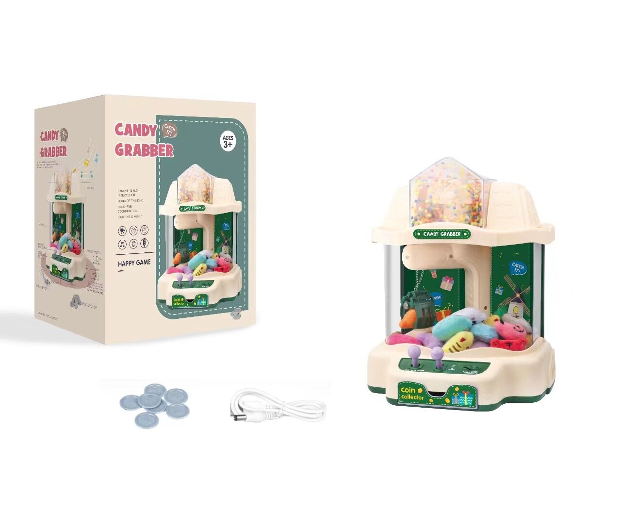 Кукла-автомат "Gacha", с космическим зажимом, 6739, зеленый, 2 стакана, 2 куклы, 3 Гача, USB-шнур