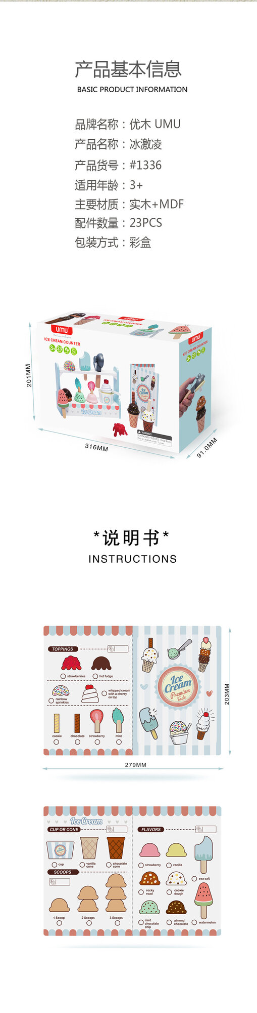 Игровой набор UMU "Мороженое", деревянный, для детей интересное: