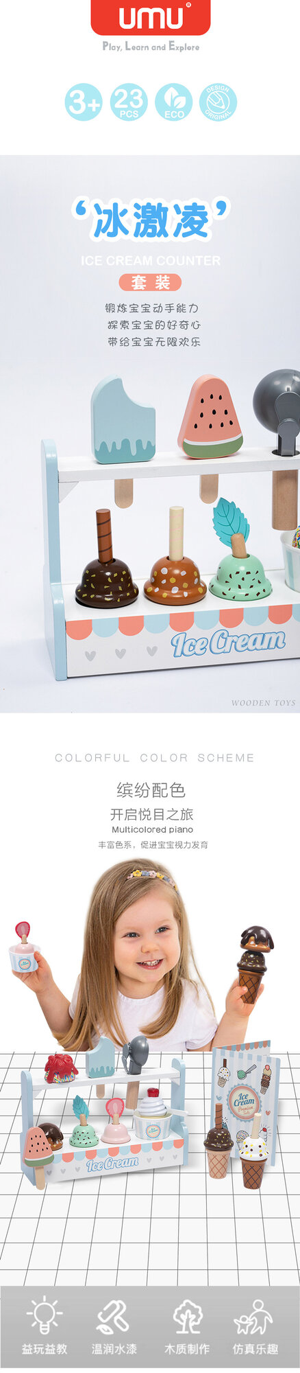 Купить Игровой набор UMU "Мороженое", деревянный, для детей