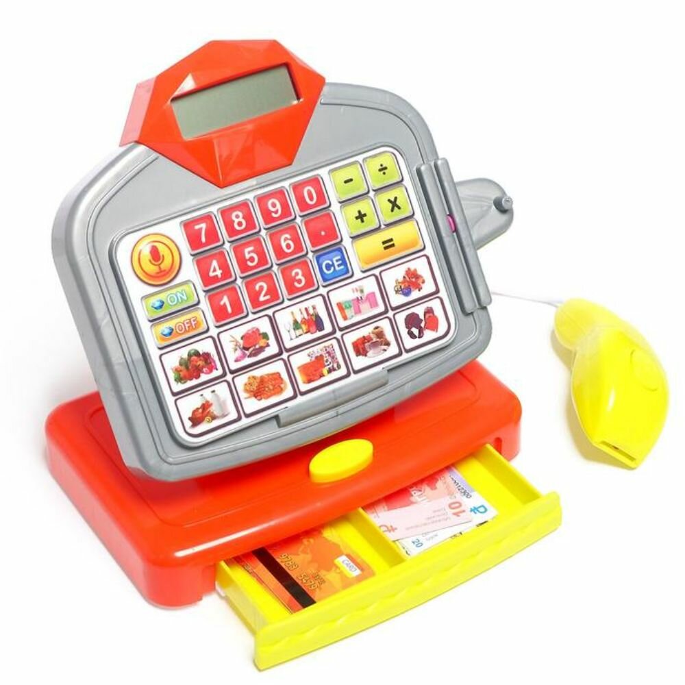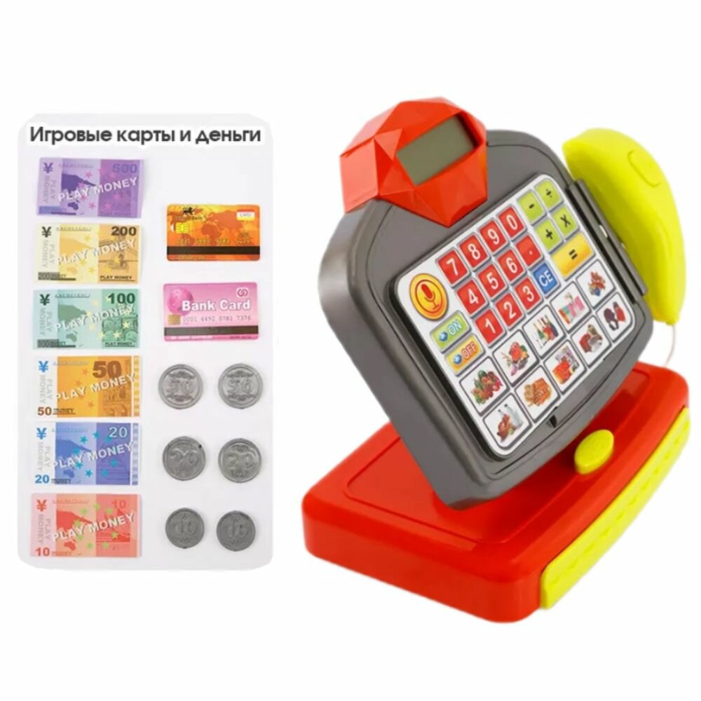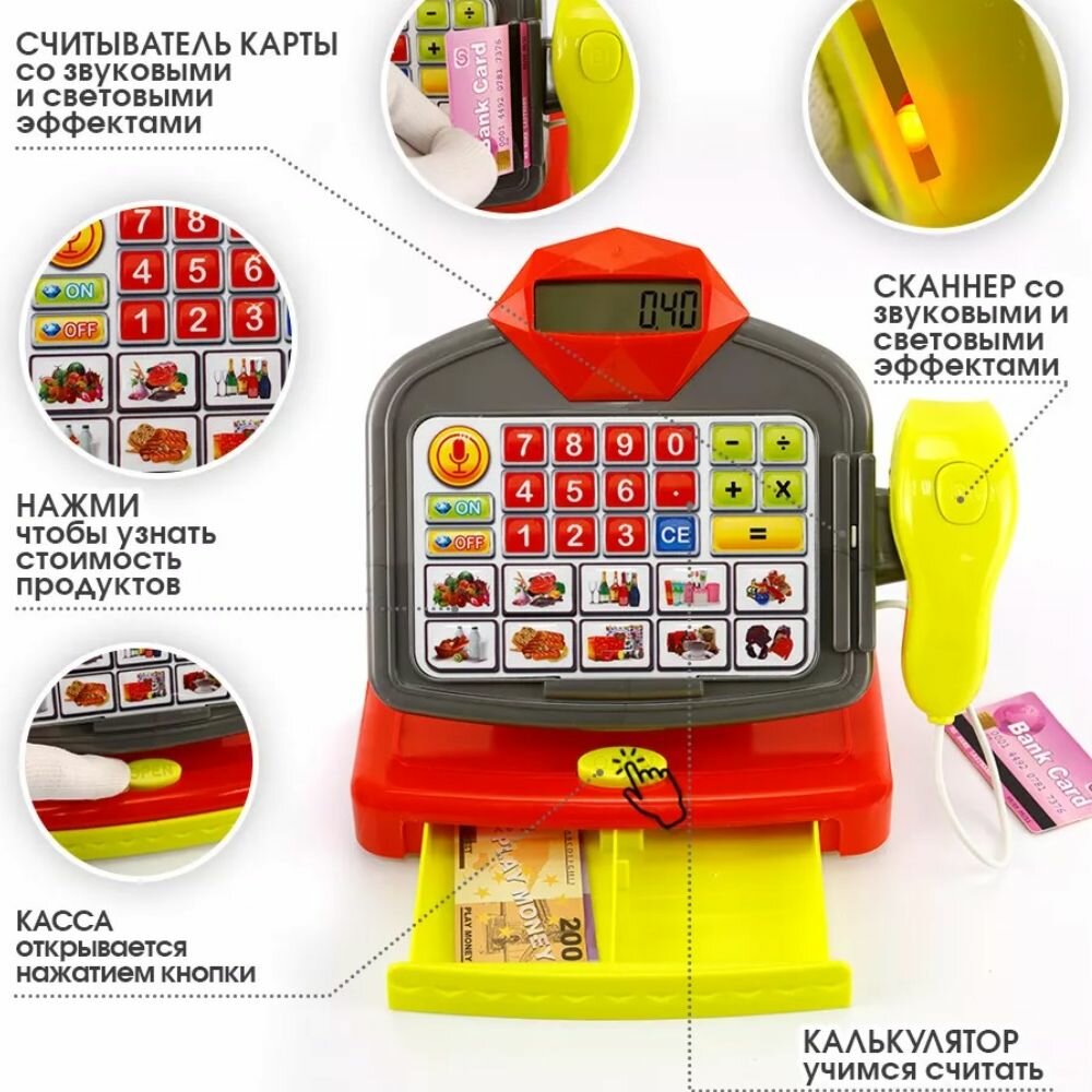 Купить Детская игрушка касса - калькулятор игрушечная со сканером, деньгами и аксессуарами, со звуком и светом