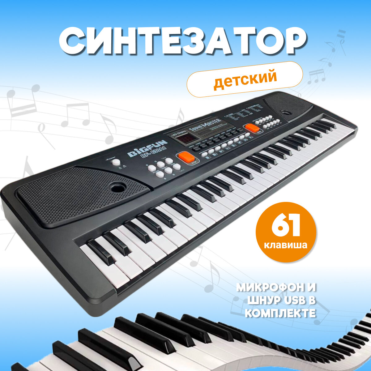 Детское Пианино Bigfun/Синтезатор 61 клавиша с микрофоном, работает от сети и батареек интересное:
