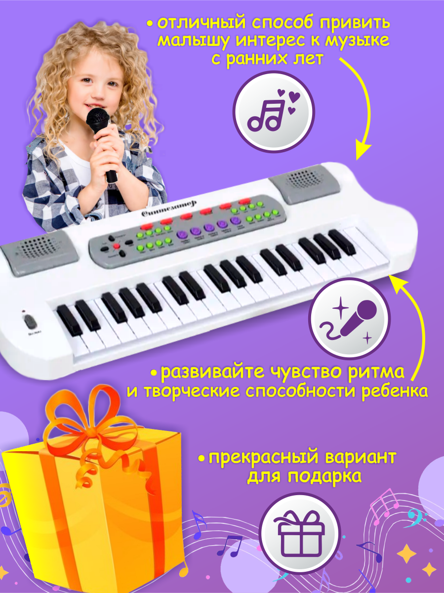Детская игрушка Синтезатор с микрофоном (HS3710B), от сети, батареек интересное: