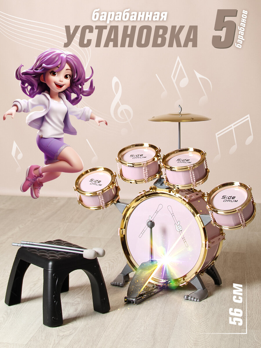 Детская барабанная установка 5 шт, Veld Co / Музыкальный инструмент барабаны для детей интересное:
