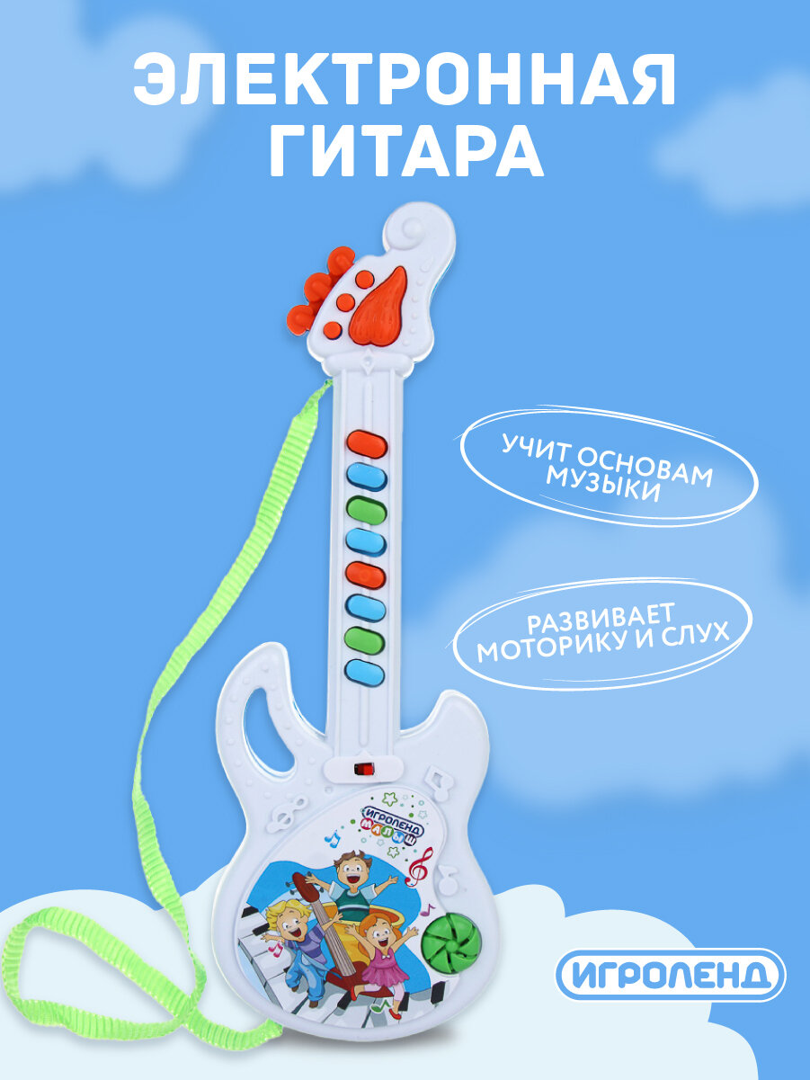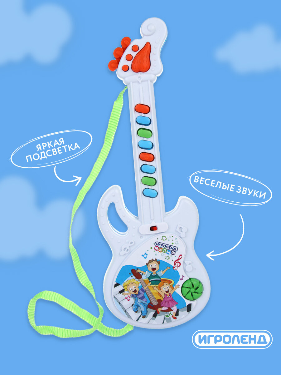Гитара детская МЕШОК ПОДАРКОВ, детский музыкальный инструмент, 2хАА, 10х25х3см интересное: