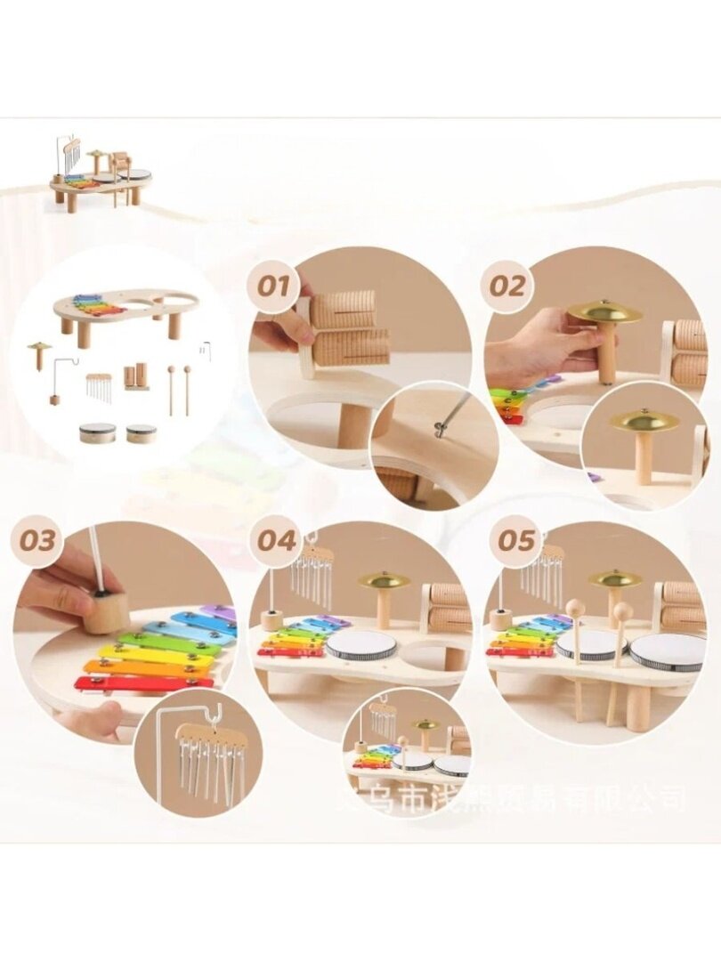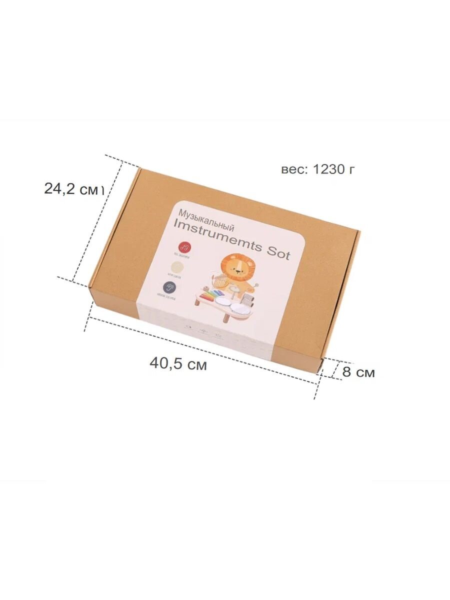 Детская музыкальная ударная установка с ксилофоном, 4 предмета, 29,5х25 см, дерево