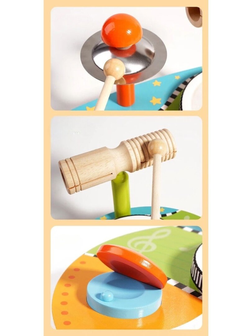 Детская музыкальная ударная установка с ксилофоном, 4 предмета, 29,5х25 см, дерево