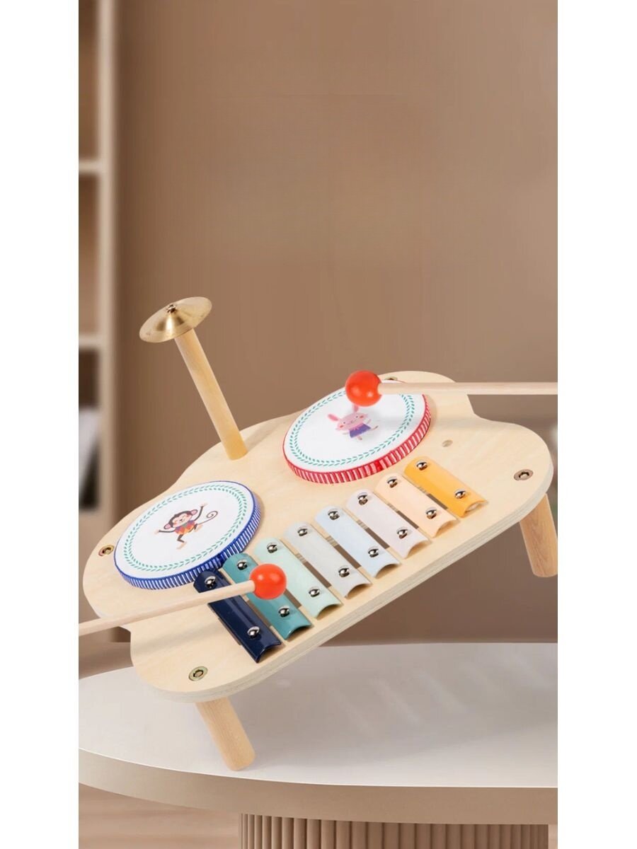 Купить Детская музыкальная ударная установка с ксилофоном, 4 предмета, 29,5х25 см, дерево