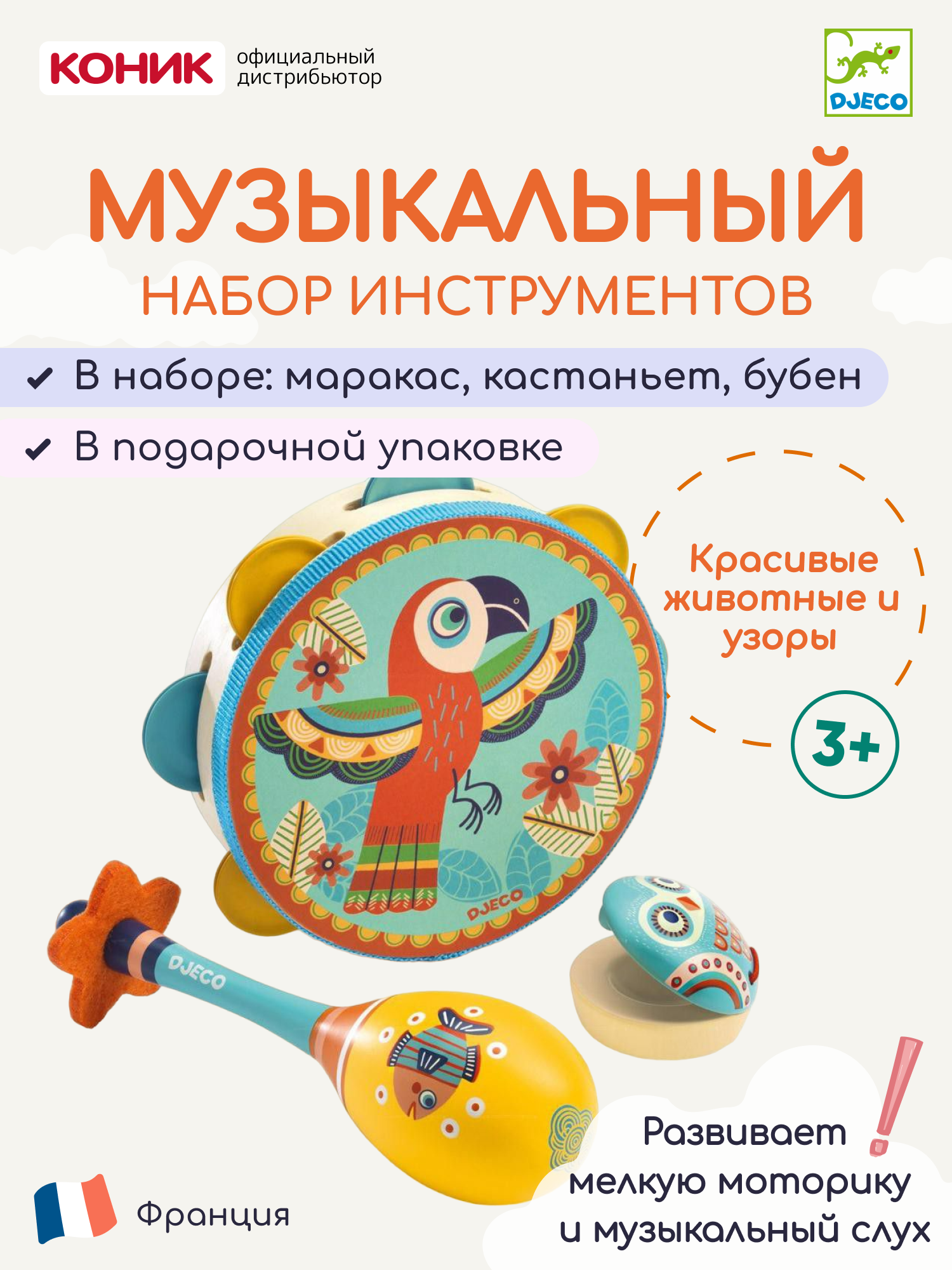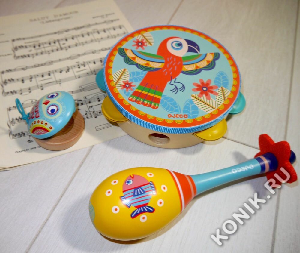 Набор музыкальных инструментов Djeco (маракас, кастаньет, бубен) 6016 интересное: