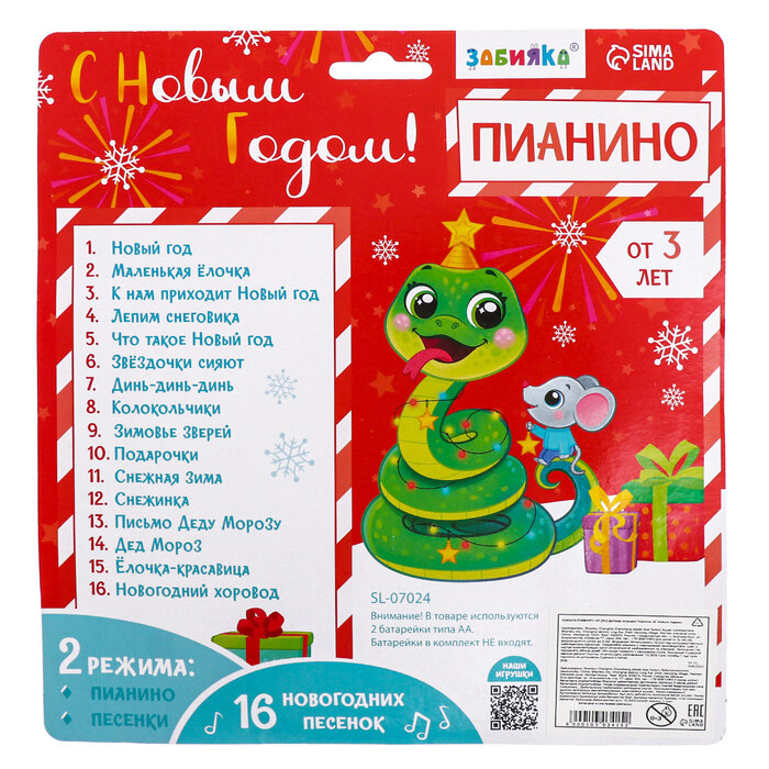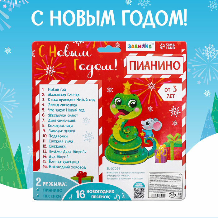 Новый год. Музыкальная игрушка «Пианино. Змея», звук, зелёный интересное: