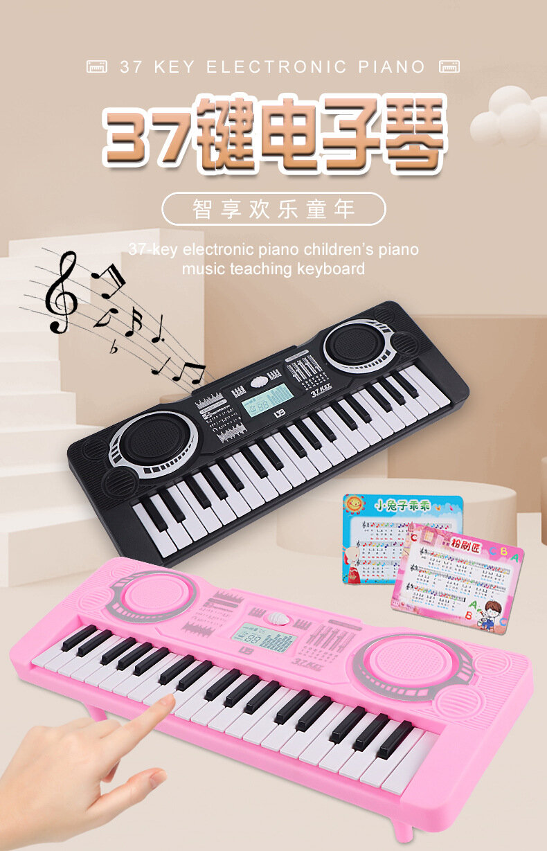 Детское пианино 899-9, 37 клавиш, пластик, цветное окно, для детей 3-6 лет