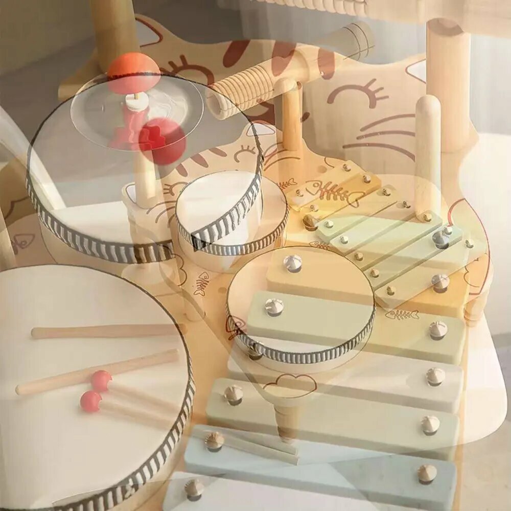 Купить Детский деревянный ударный инструмент барабанная установка,26*31*28cm