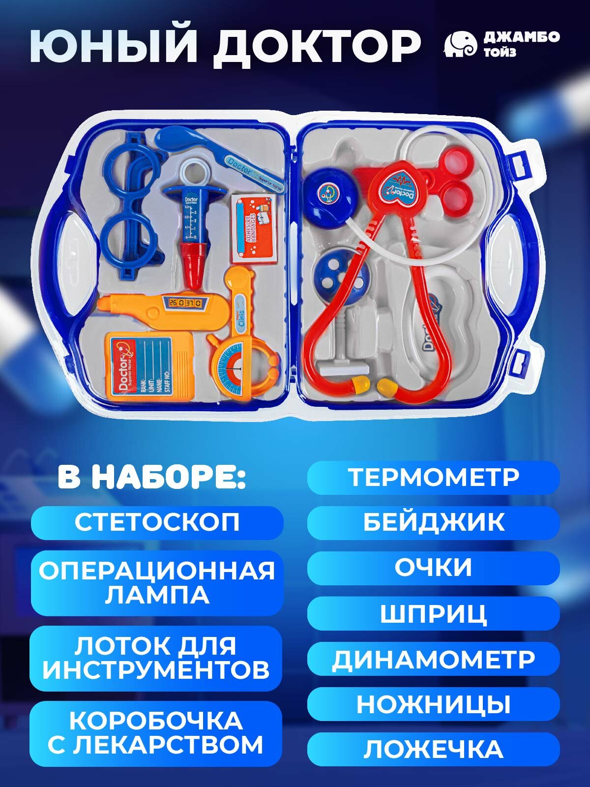 Купить Игровой набор детский "Доктор", 11 предметов, в чемоданчике, синий, JB0213755