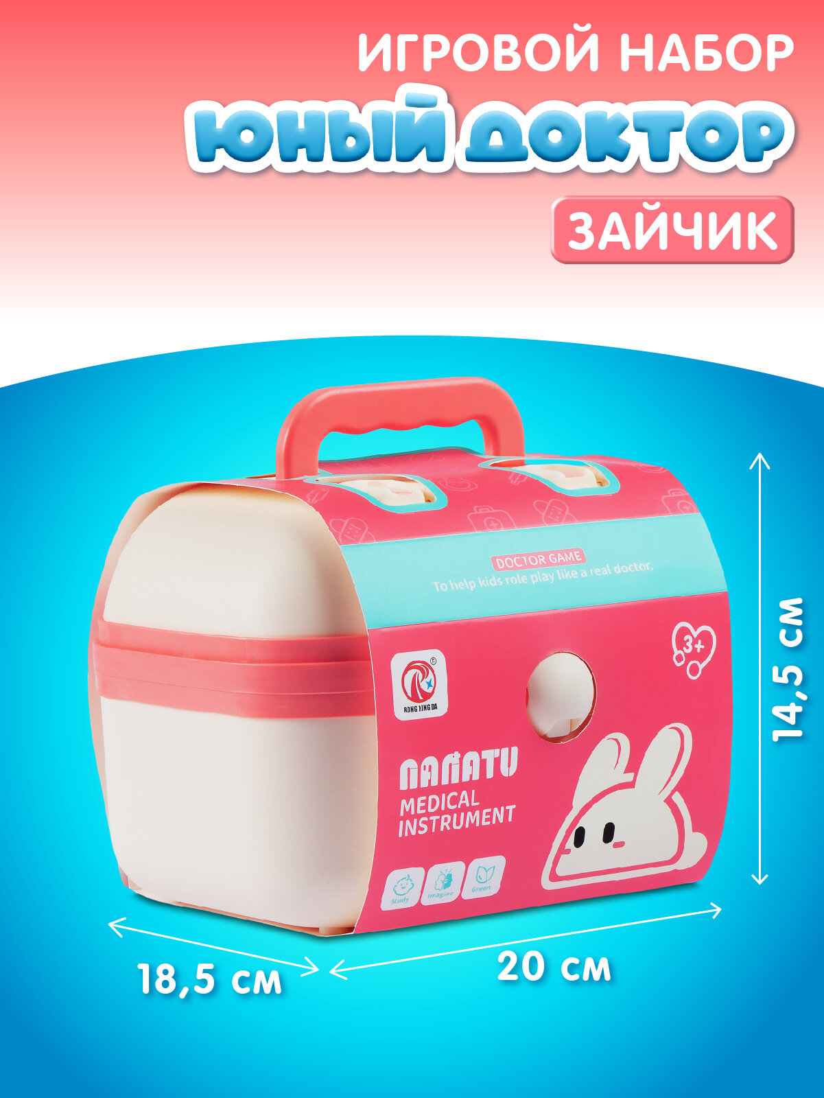 Игровой набор Юный доктор в чемоданчике "Зайчик", 13 предметов, JB0213751