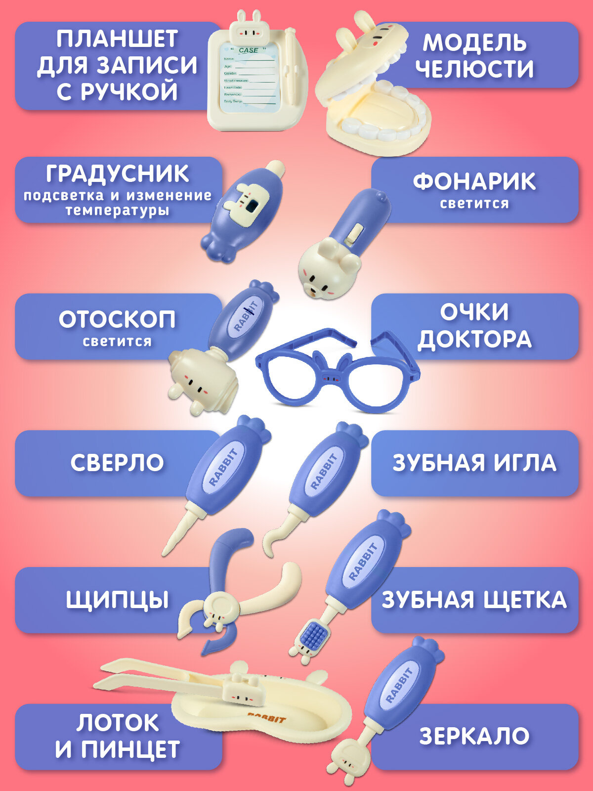 Игровой набор Стоматолог, ветеринар, профессия, ролевые игрушки, для девочек/мальчиков, 11 предметов, JB0213986