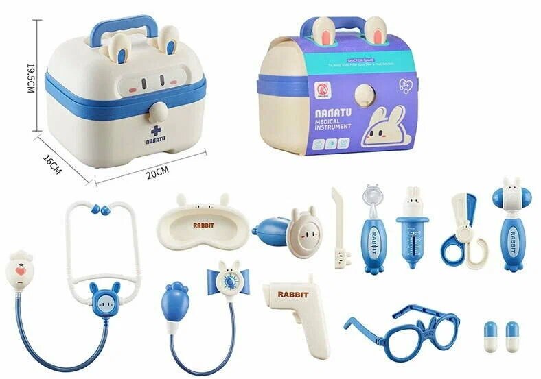 Набор доктора RABBIT (13 предм.) на батар. голубой в чемодане интересное: