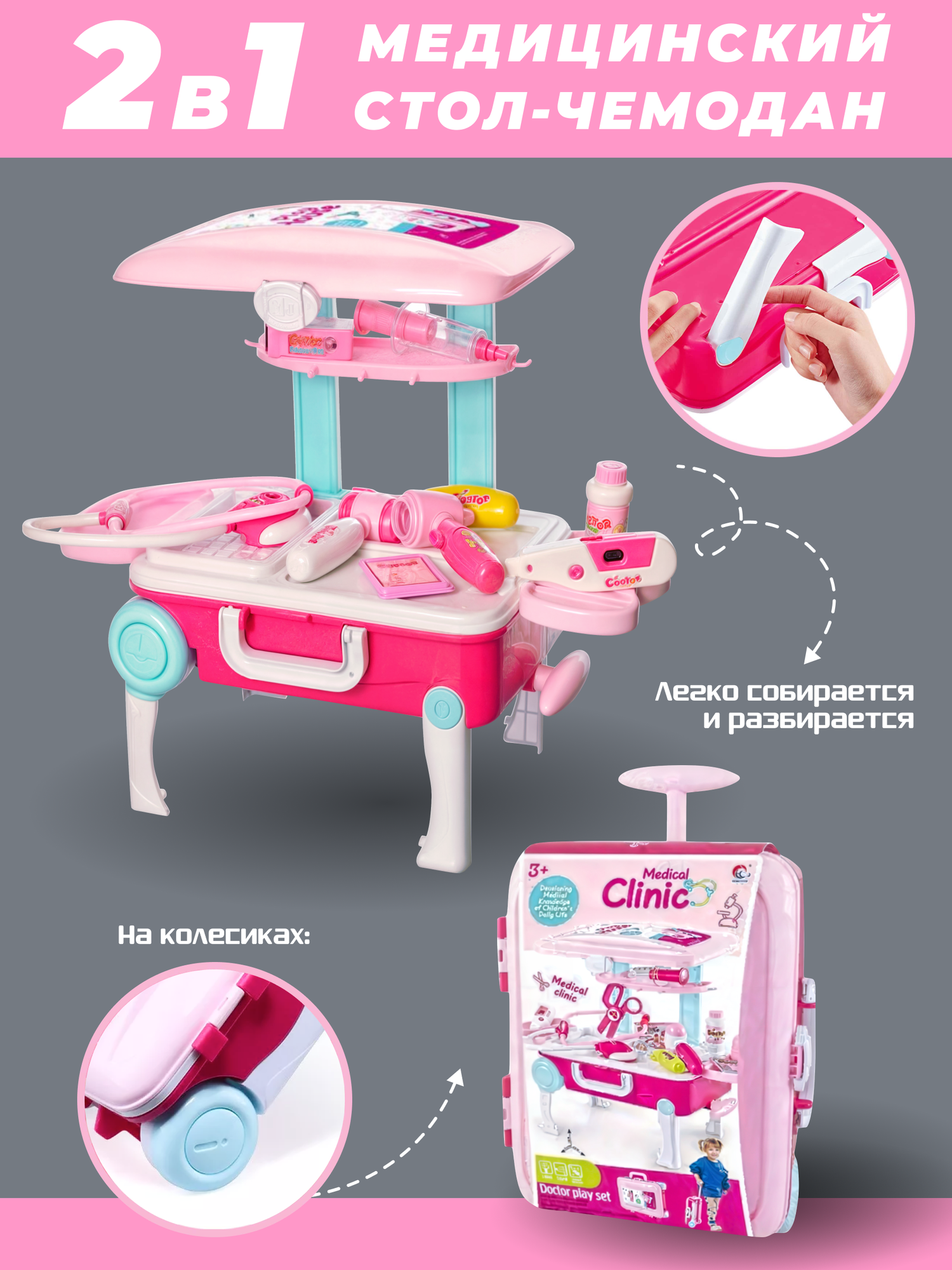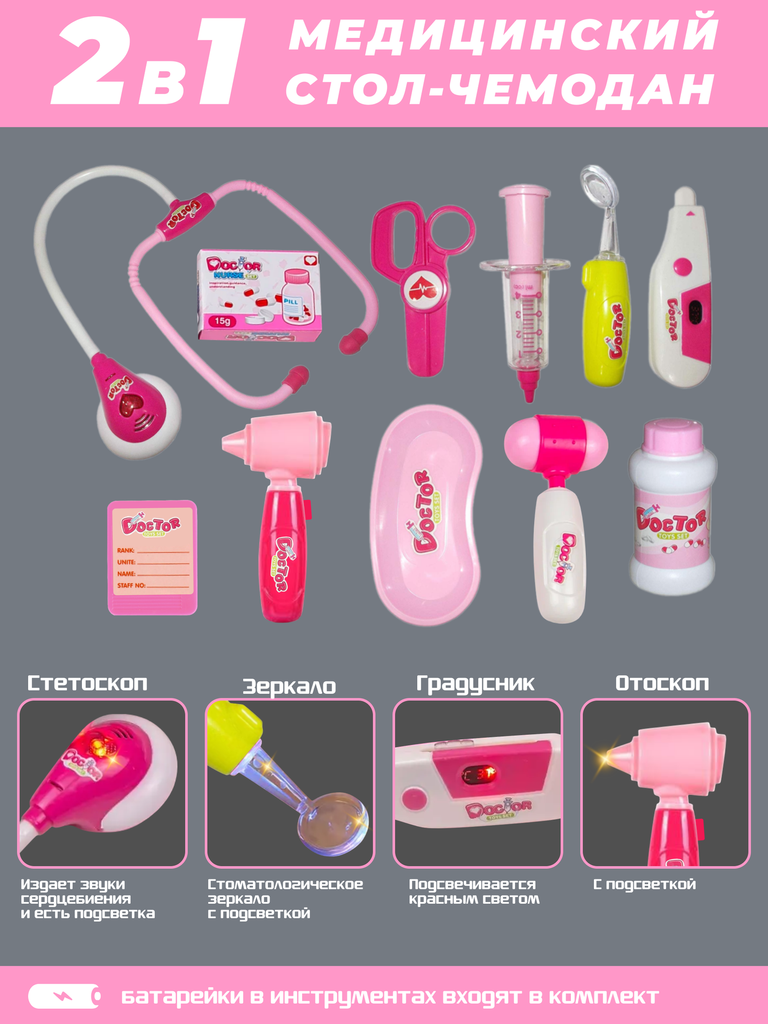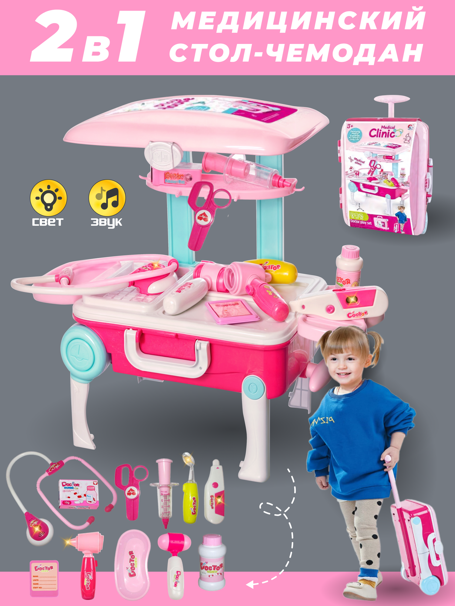 Детский игровой набор доктора врача в чемодане с аксессуарами, свет, звук, на батарейках, 45,5 х 38 см в собранном виде интересное: