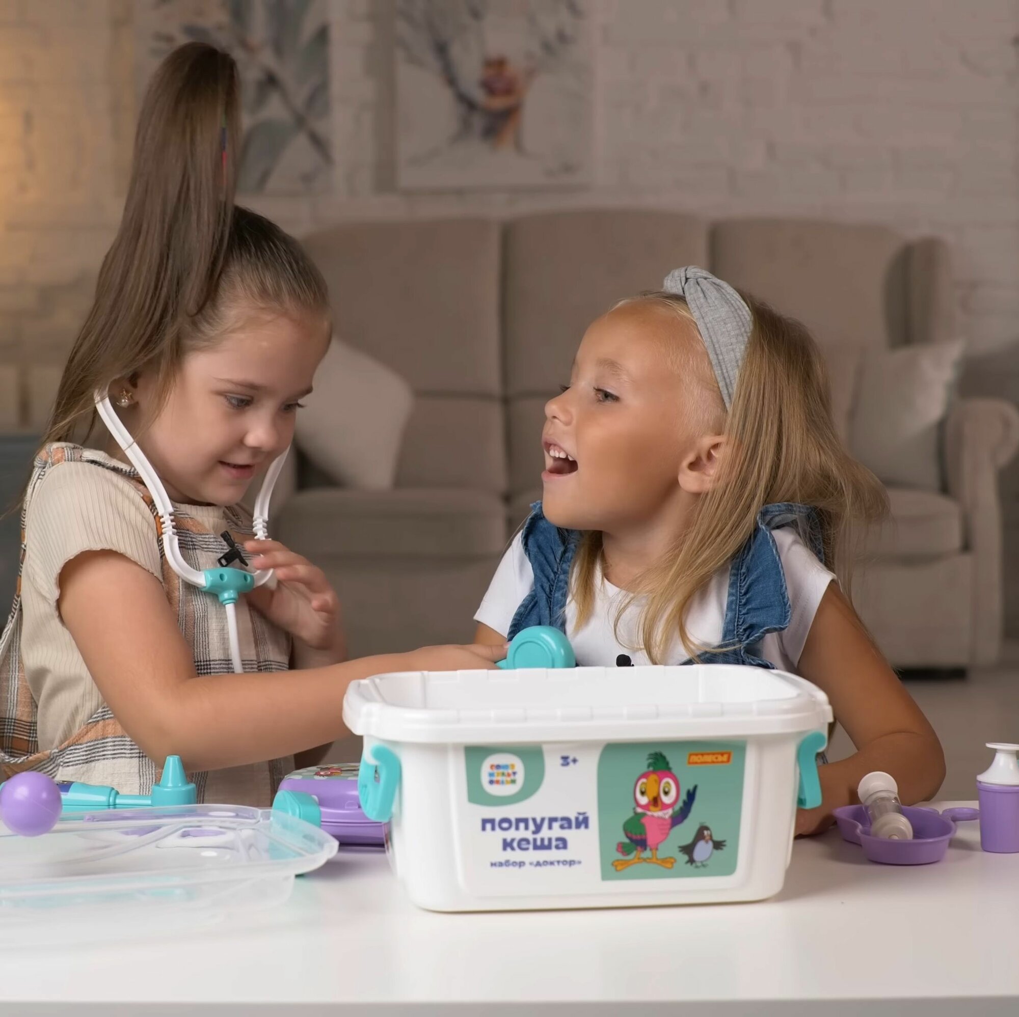 Купить Набор инструментов доктора Полесье в чемодане-саквояже с наклейками из мультфильма Попугай Кеша