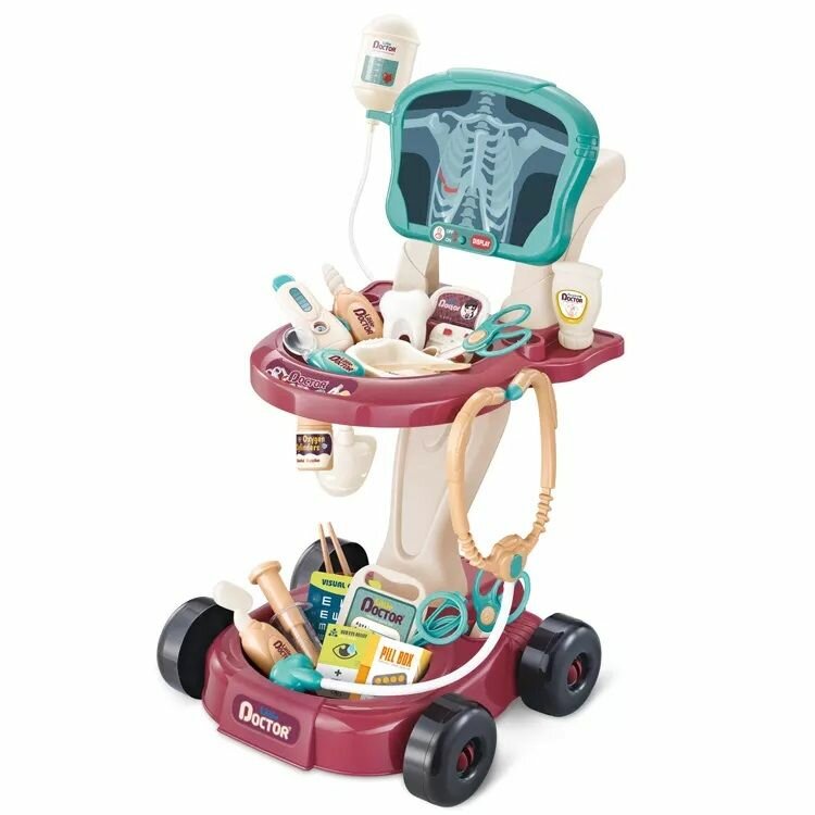 Купить Набор доктора детский на тележке / Тележка доктора 29 предметов со световыми эффектами 660-88