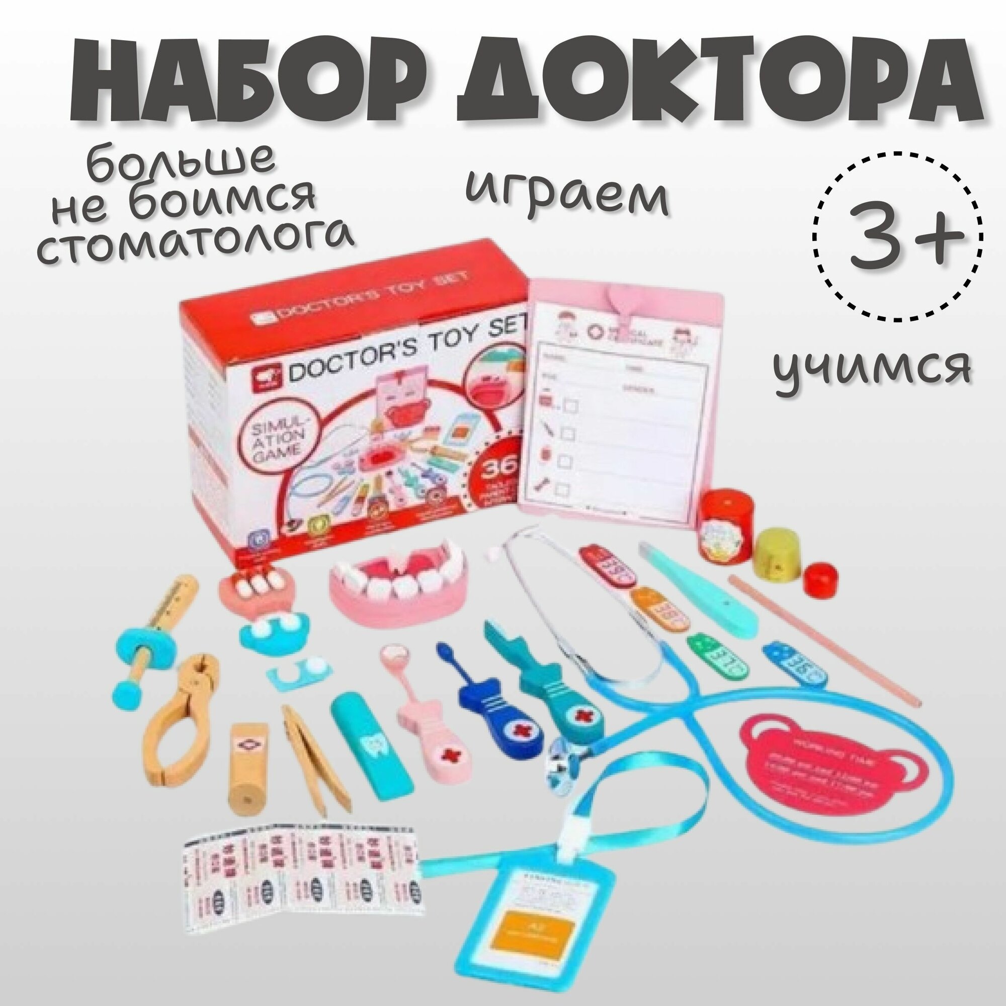 Купить Набор Доктора Стоматолог Детский Деревянный Монтессори 33 предмета