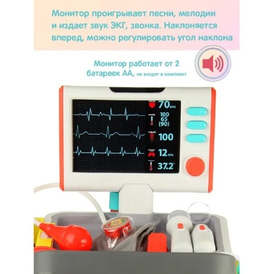 Детский игровой набор юного доктора с тележкой и инструментами, Veld Co