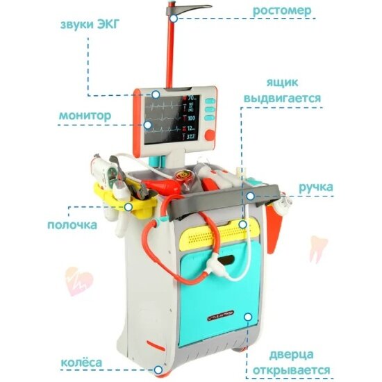Игровой набор Veld CO 132682 Доктора с тележкой и инструментами 22 предмета интересное: