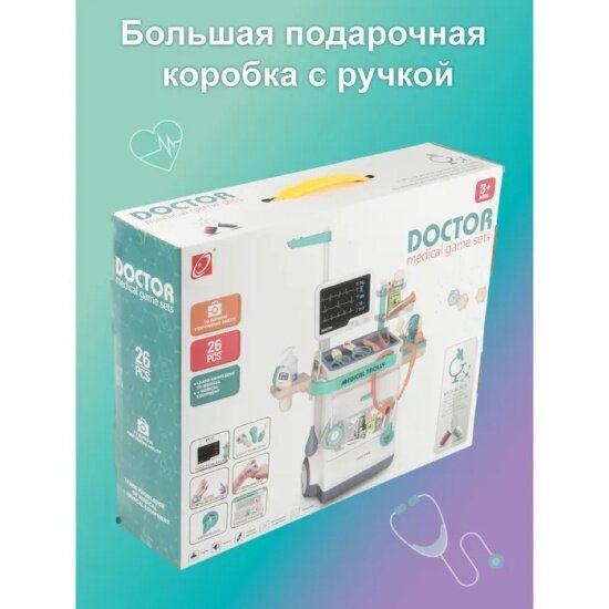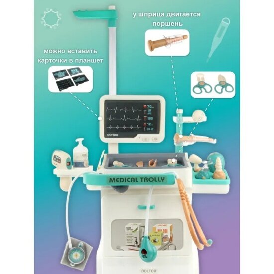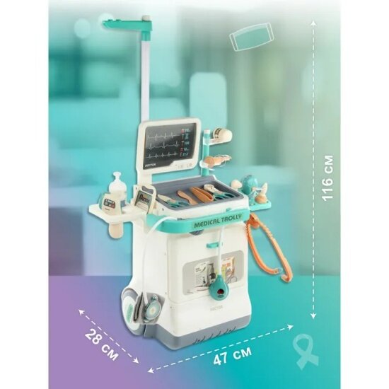 Детский игровой набор юного доктора с тележкой и инструментами, Veld Co