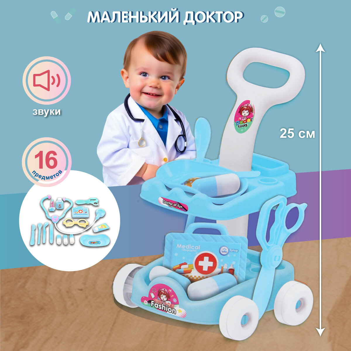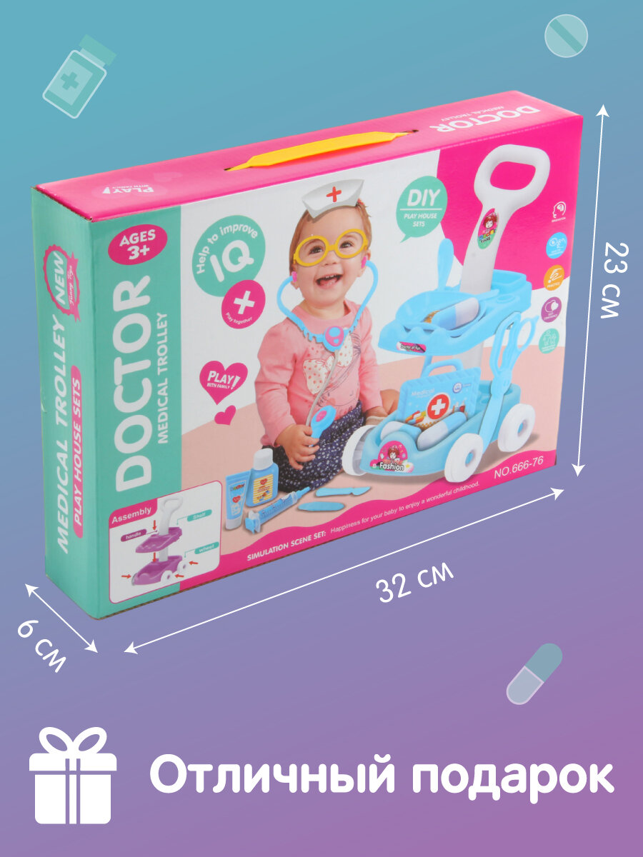 Купить Детский игровой набор юного доктора с тележкой и инструментами, Veld Co