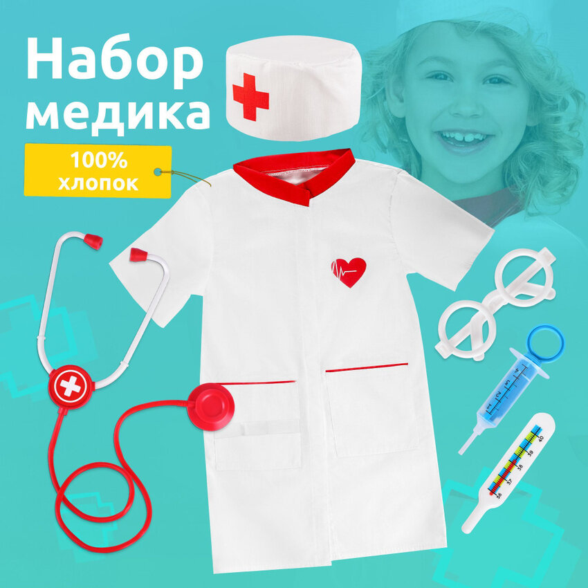 Купить Игровой набор доктора детский MEGA TOYS костюм врача для детей 6 предметов