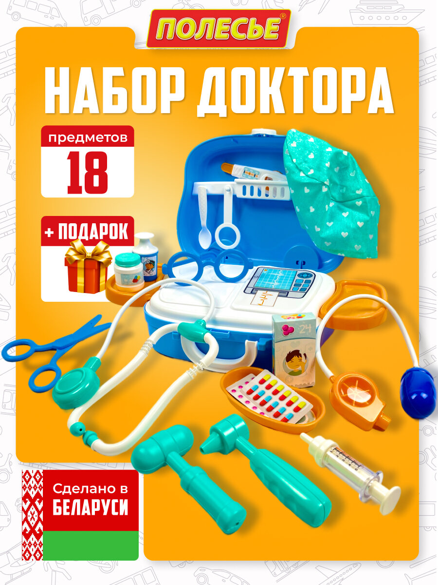 Набор детских игрушечных инструментов Доктор от бренда "Полесье" 18 предметов интересное: