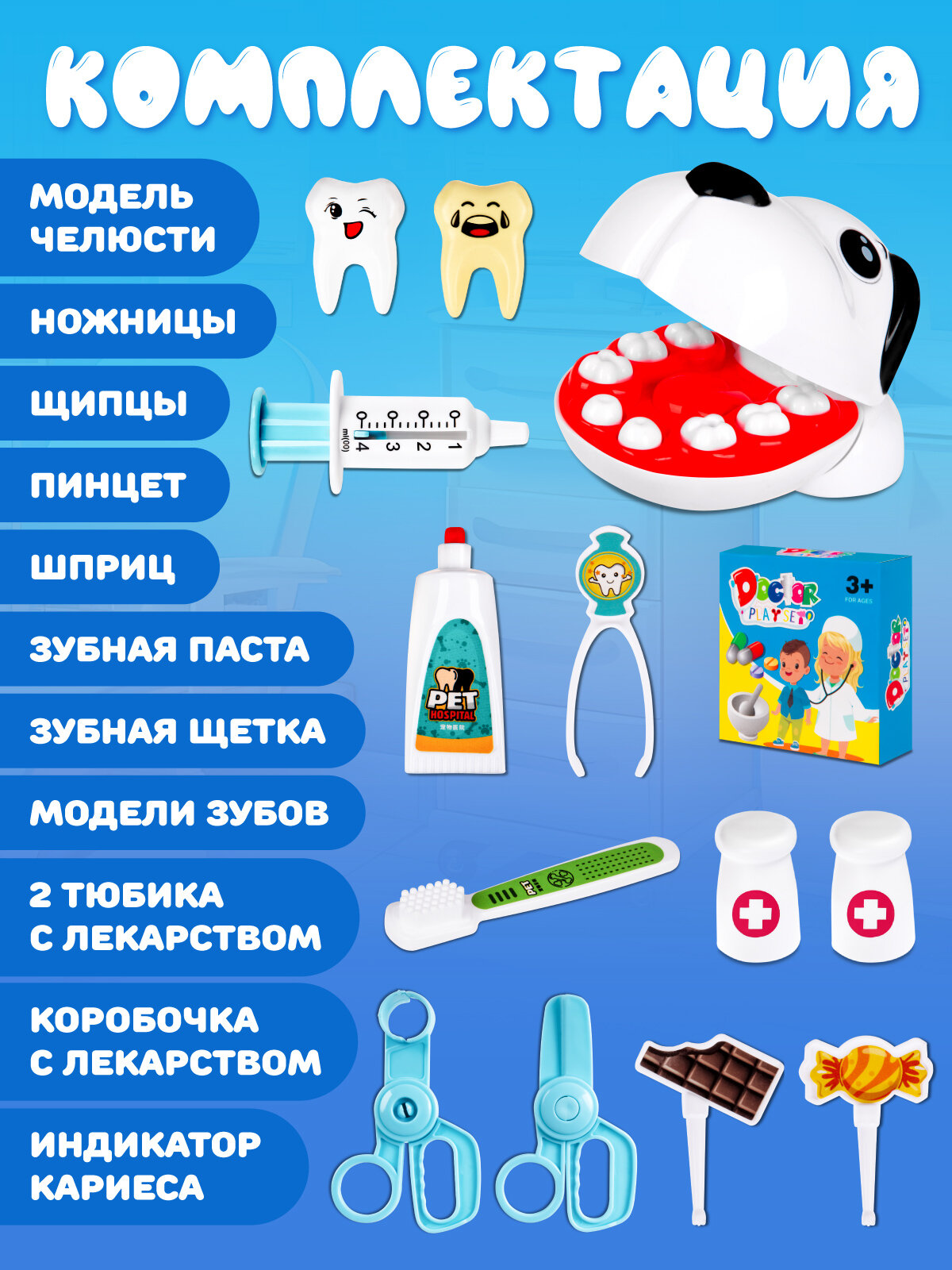 Ниже Вы можете прочитать отзывы на Игровой набор Стоматолог, ветеринар, профессия, ролевые игрушки, для девочек/мальчиков, 14 предметов, JB0213866, ознакомится с подробными характеристиками, посмотреть интересные обзоры и фотографии на Игровой набор Стоматолог, ветеринар, профессия, ролевые игрушки, для девочек/мальчиков, 14 предметов, JB0213866.