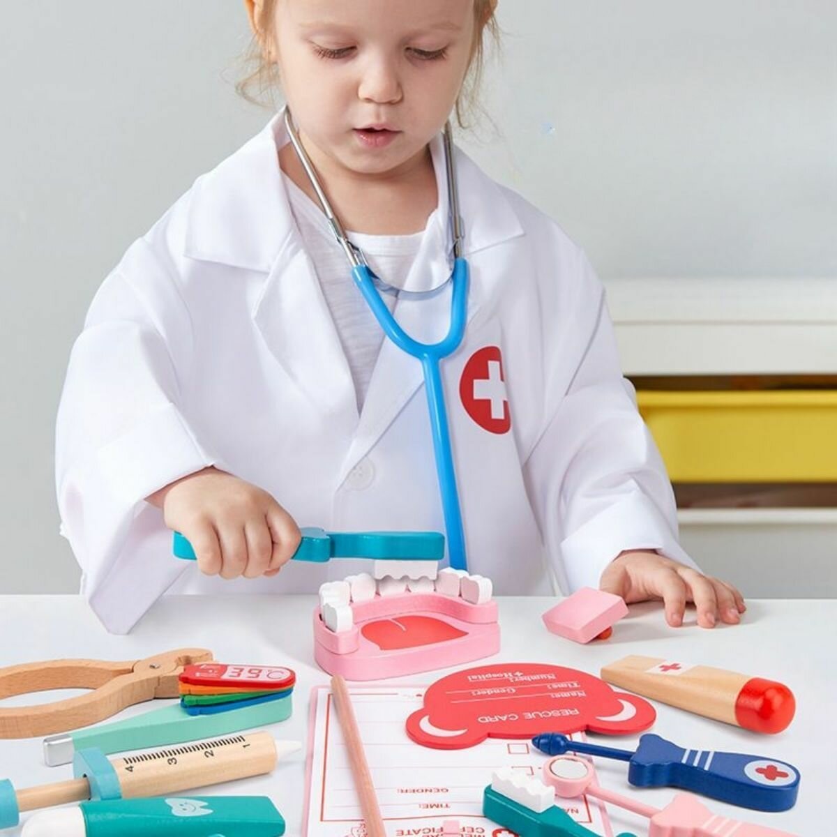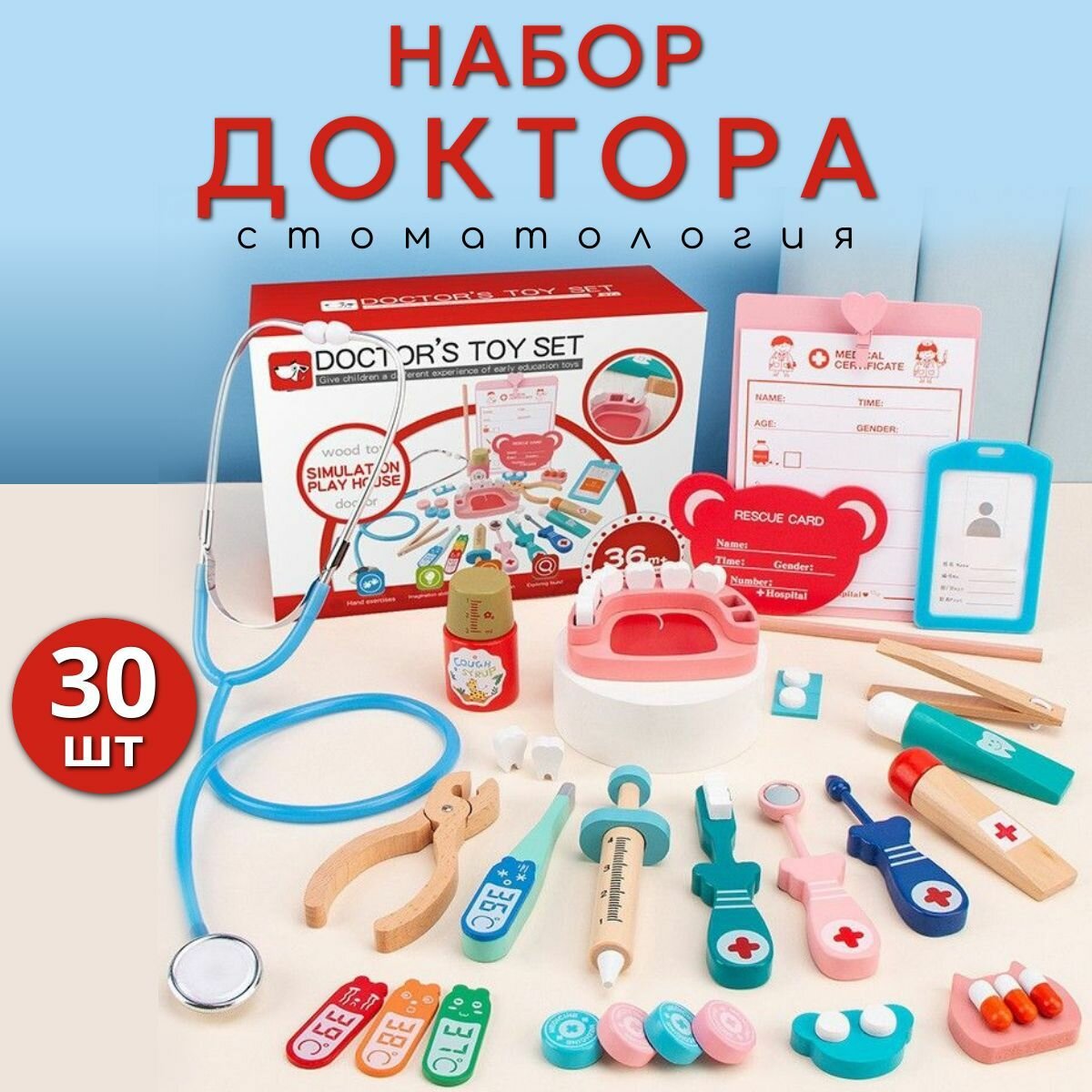 Детский игровой набор врача доктор-стоматолога/ Деревянный набор врача интересное: