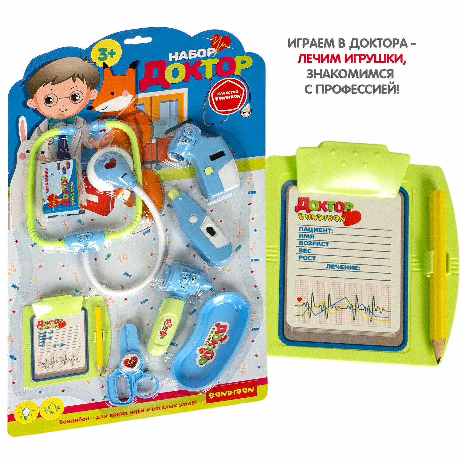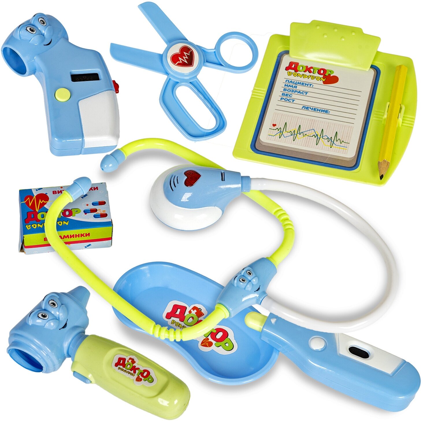 Игровой набор Bondibon "доктор" со светом и звуком, голубой, 9 предметов интересное: