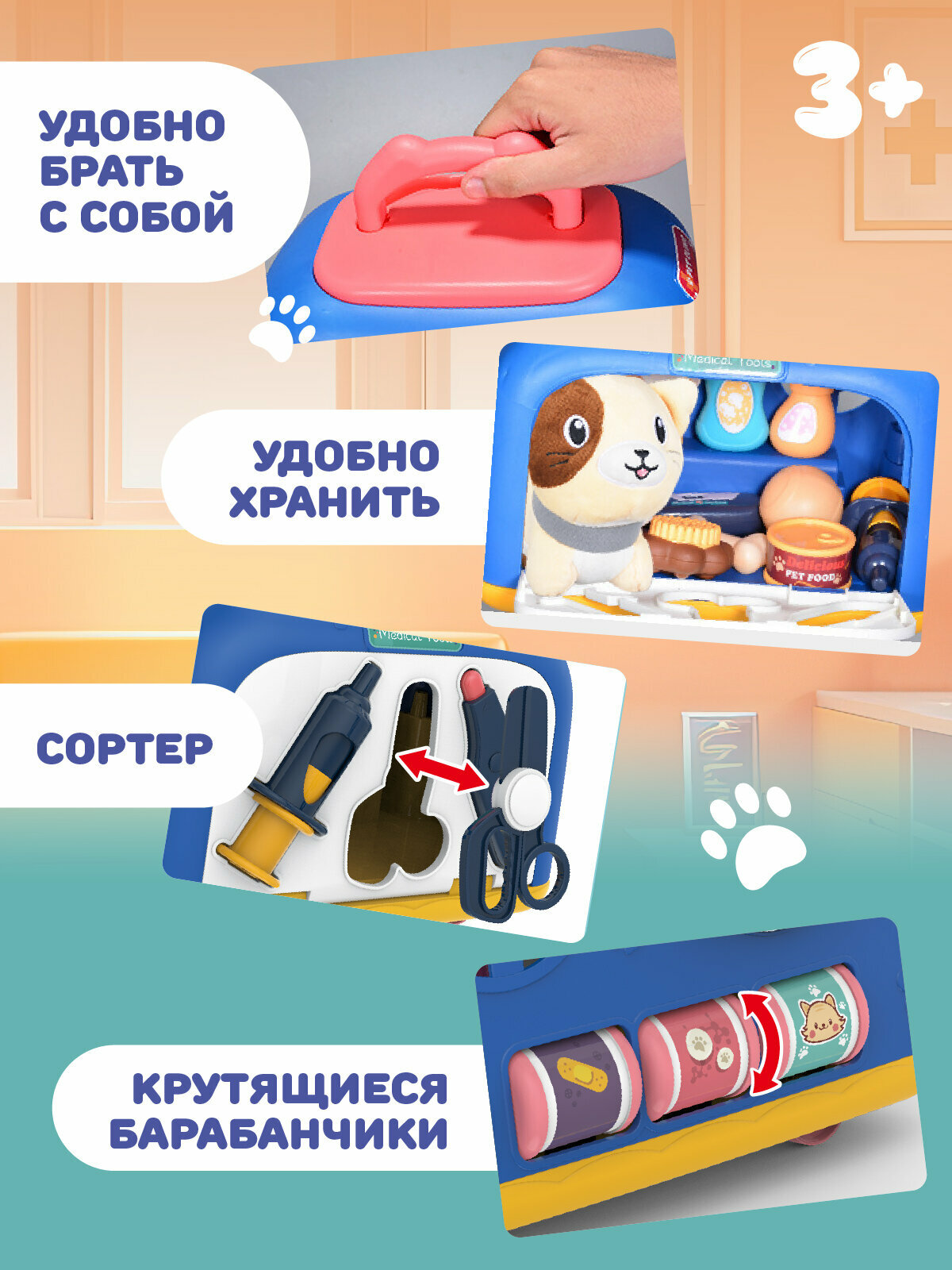 Игровой набор Ветеринар, уход за домашним питомцем, груминг, в комплекте животное с домиком-переноской, JB0213757 интересное: