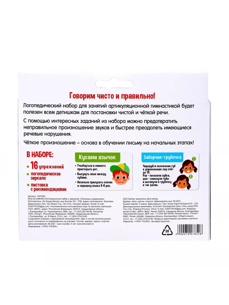 Логопедический набор с зеркалом "Полезные упражнения" интересное: