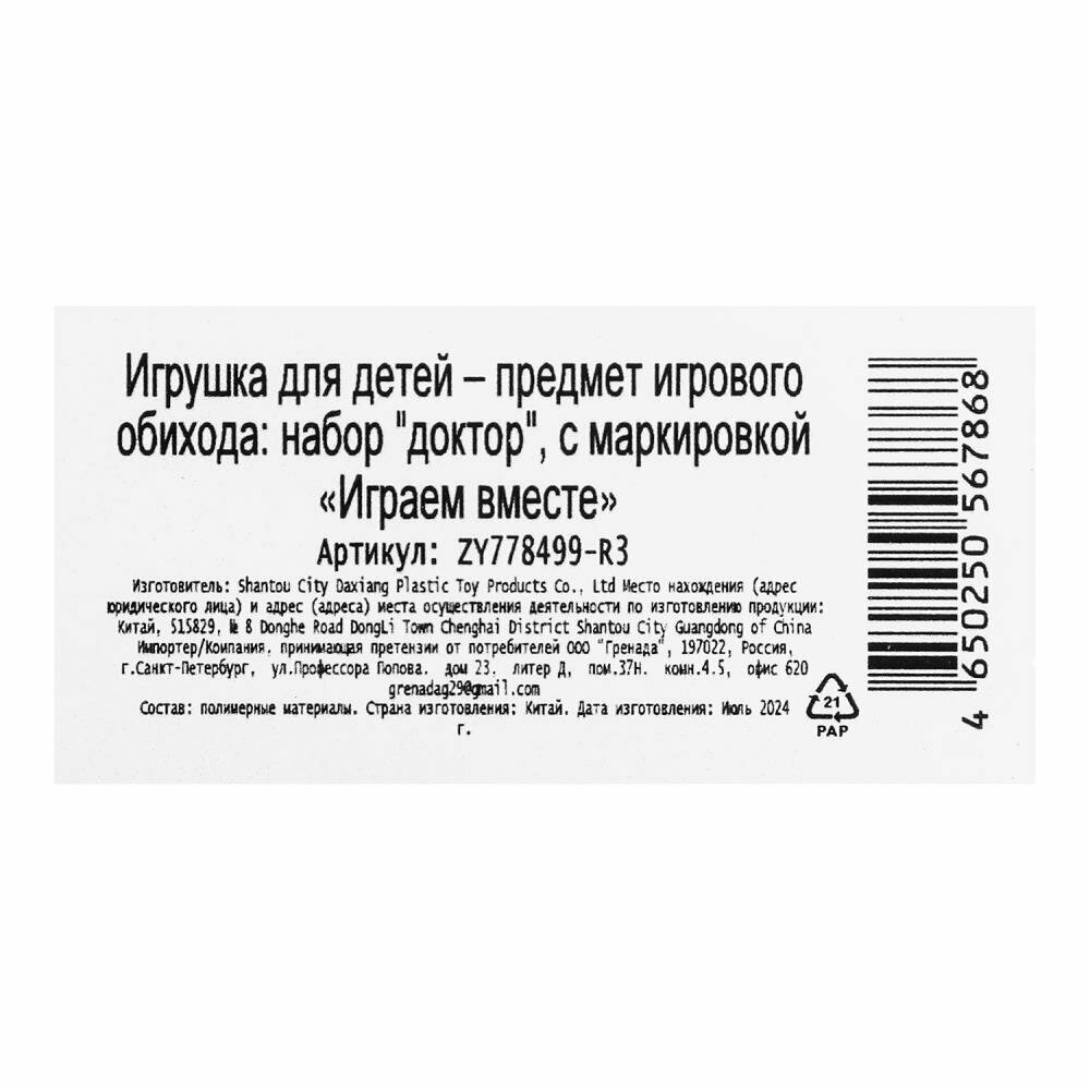 Купить Набор доктора, 23х20х6 см. пл. чемодан (игрушки) Играем Вместе ZY778499-R3
