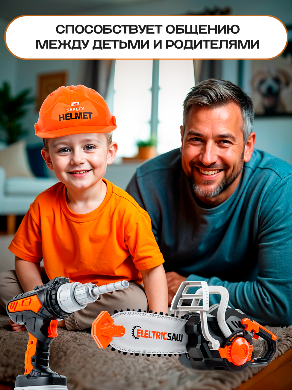 Набор инструментов детский с электрическим шуруповертом и пилой интересное: