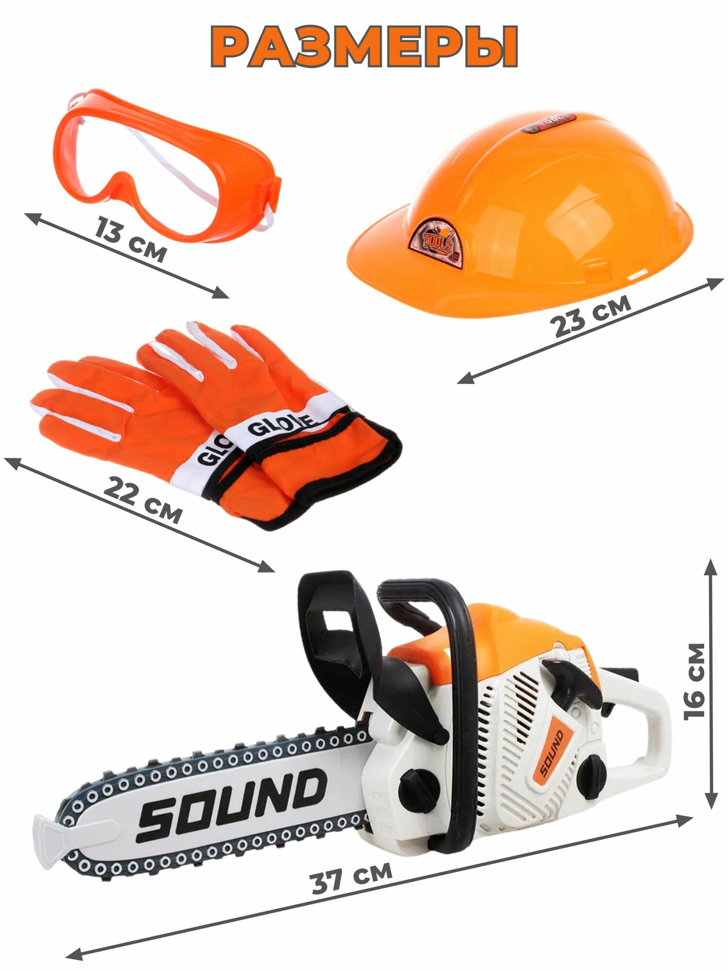 Купить Игрушечная бензопила детская на батарейках игрушка с аксессуарами, звук мотора, вращение цепи, строительный инструмент