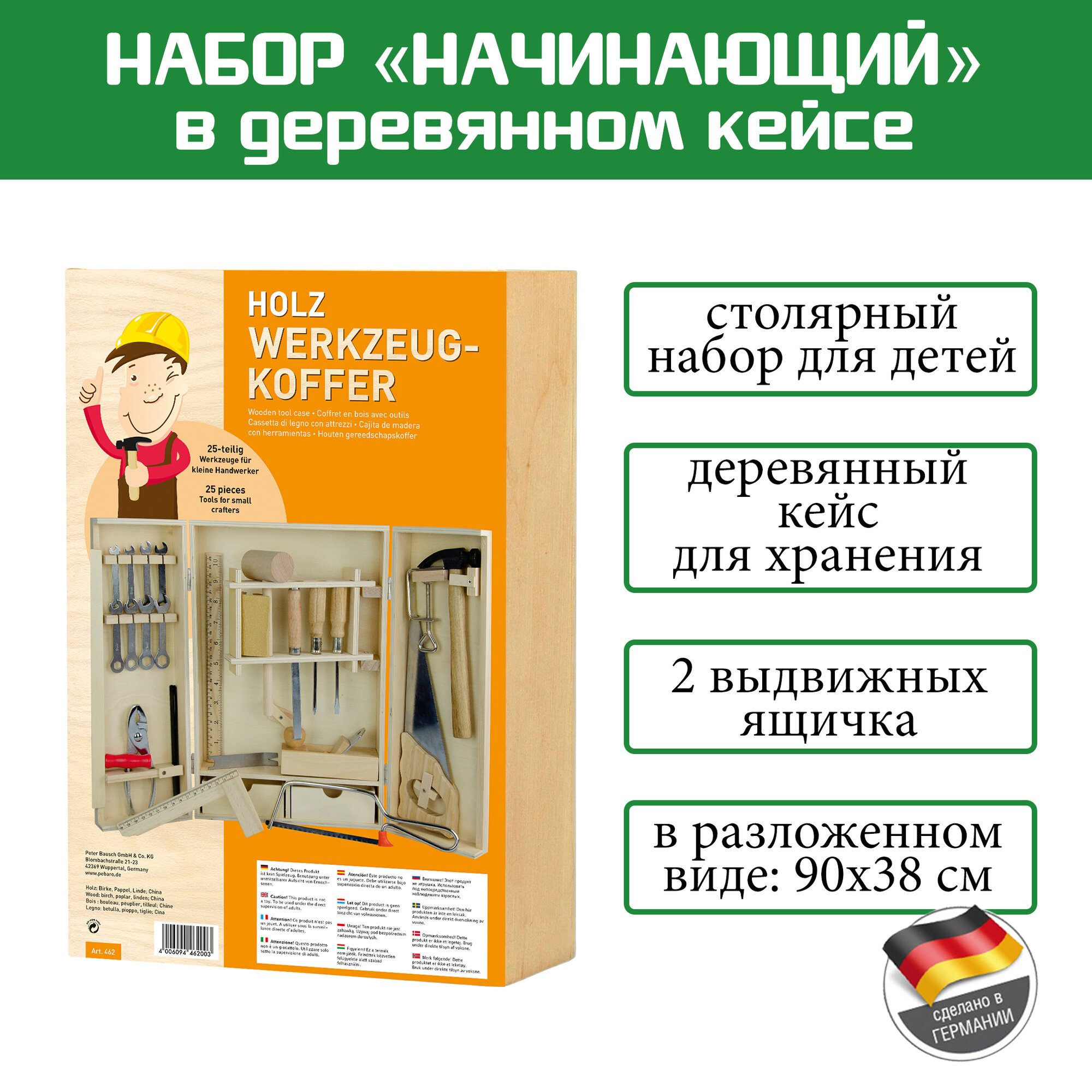 Набор инструментов для работы по дереву для начинающих в деревянном ящике Pebaro (462) интересное: