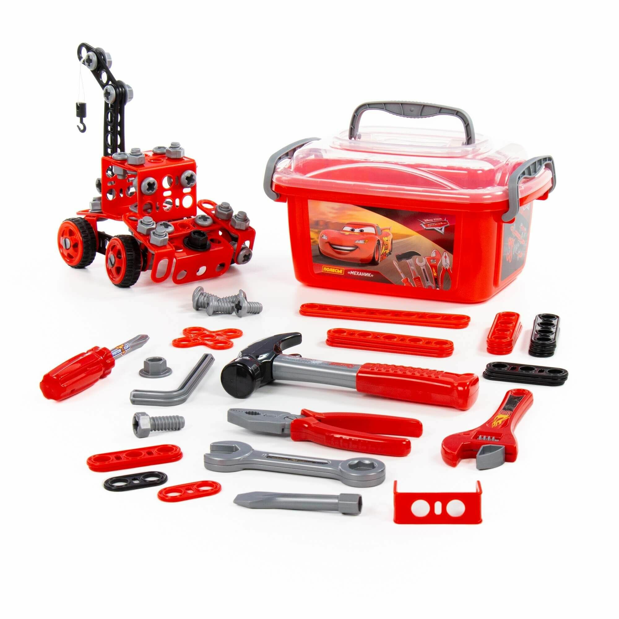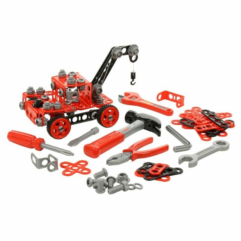 Купить Чемоданчик мастера - детские инструменты, винты, гайки, пластины для закручивания - 152 эл. в контейнере с машинкой-эвакуатором / Полесье