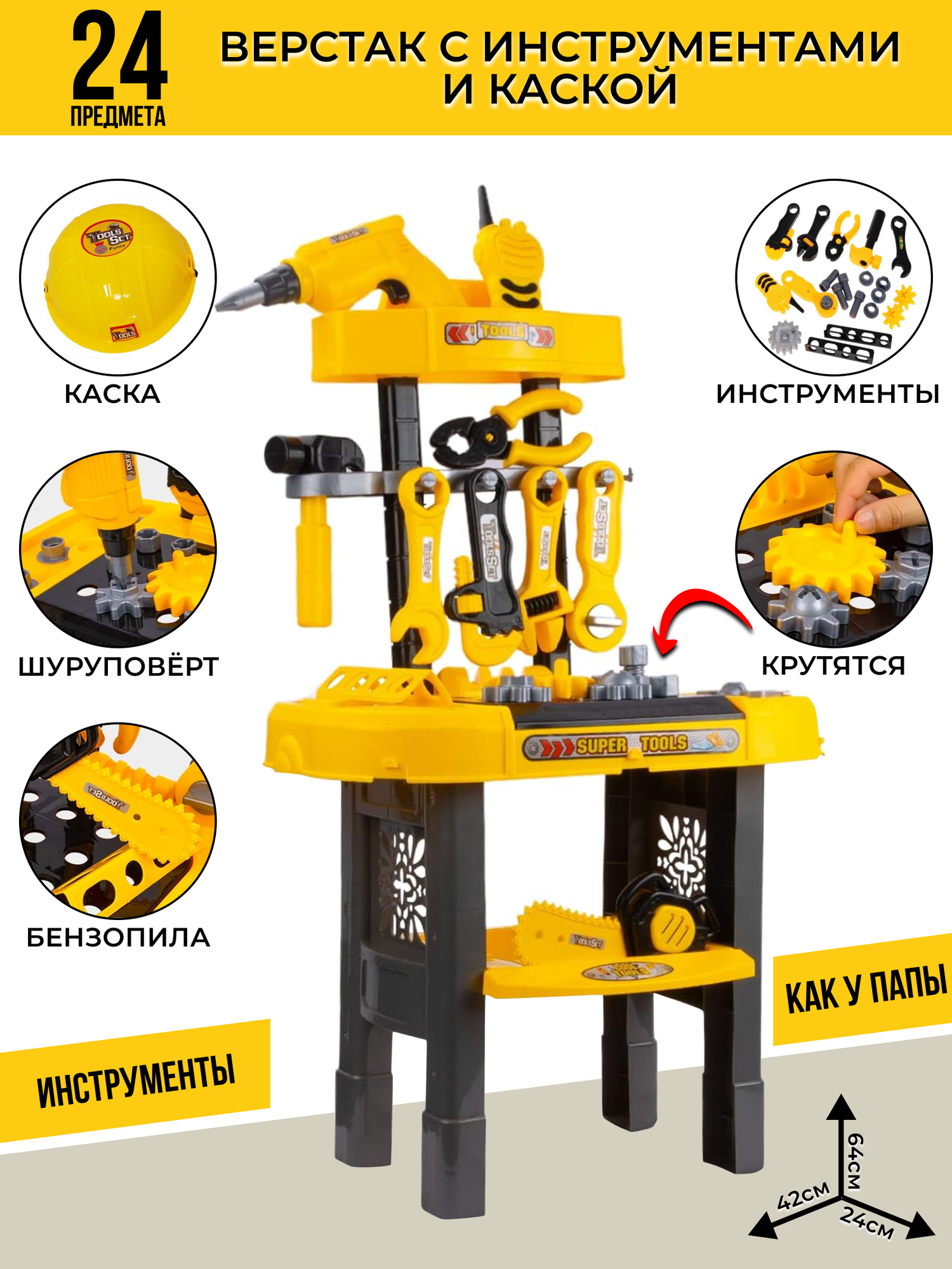 Ниже Вы можете прочитать отзывы на Детский набор строительных инструментов со стойкой Юный мастер, 43*8*57см 200281463, 139-2А/ZY814855, ознакомится с подробными характеристиками, посмотреть интересные обзоры и фотографии на Детский набор строительных инструментов со стойкой Юный мастер, 43*8*57см 200281463, 139-2А/ZY814855.