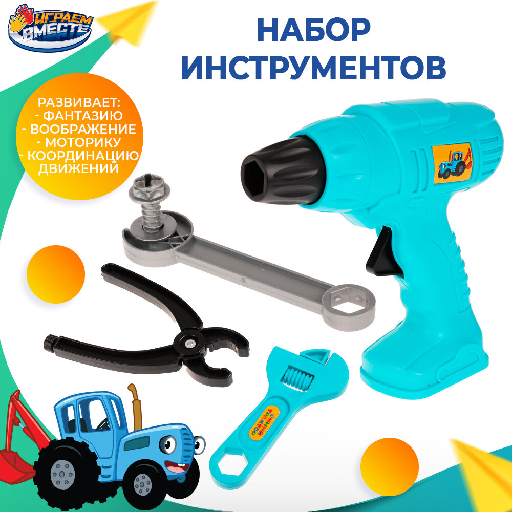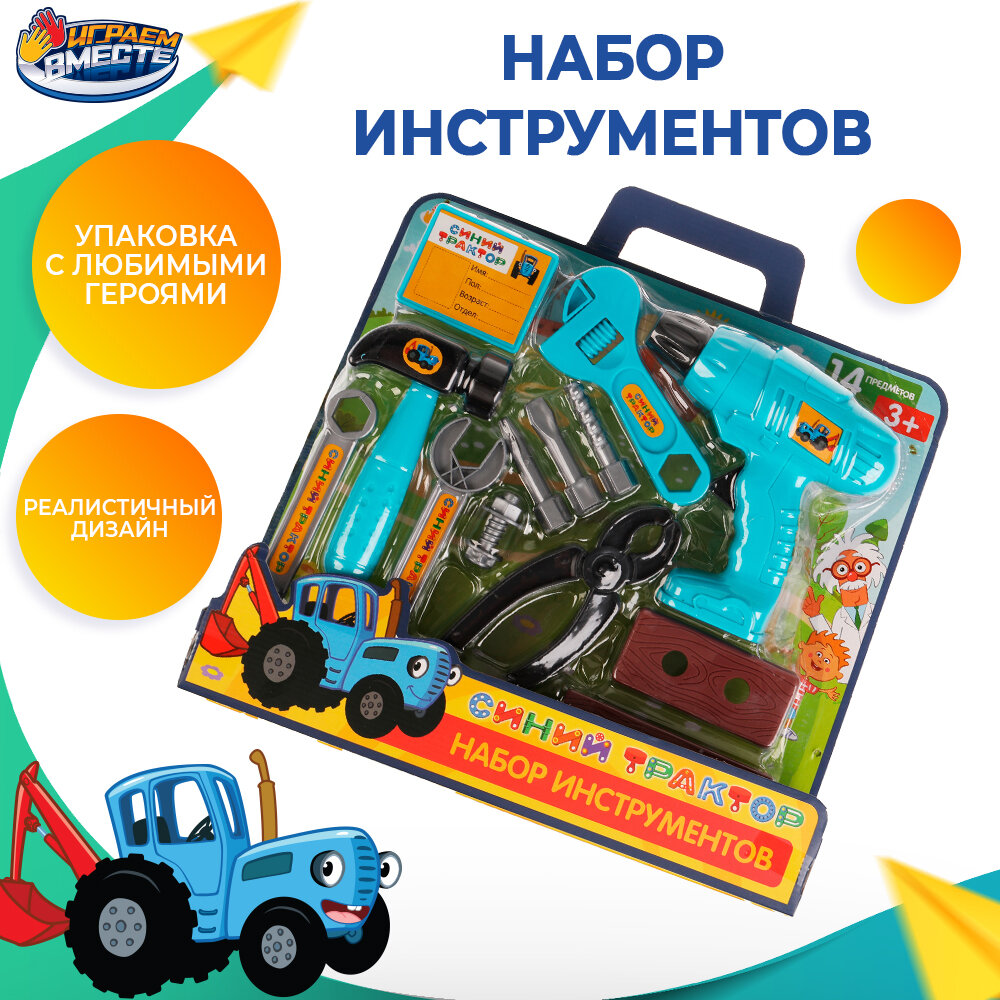Набор инструментов детский для мальчиков Синий трактор 14 предметов Играем вместе интересное: