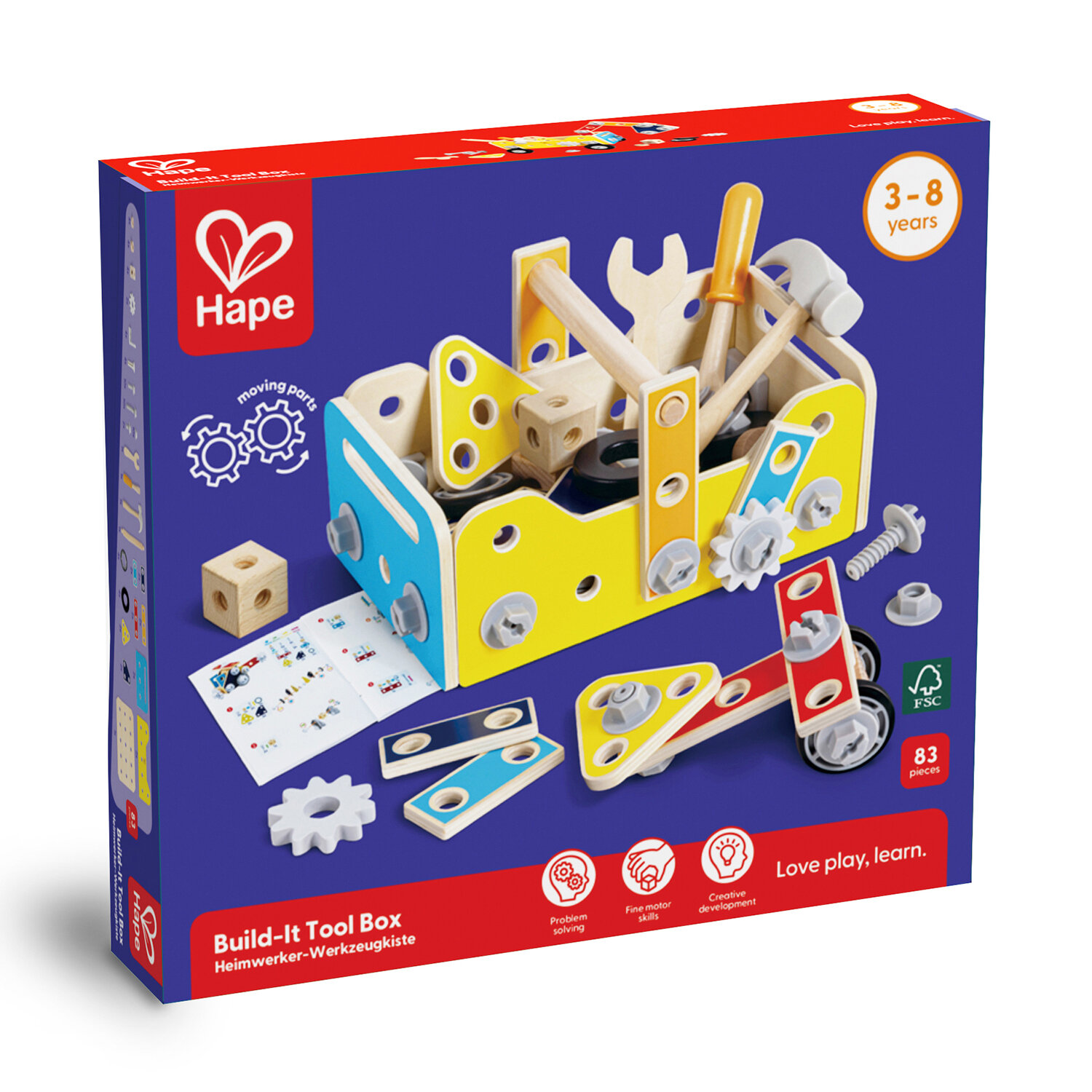 Купить Конструктор Hape "Мастерская" Ящик для инструментов, 83 элемента E3220_HP