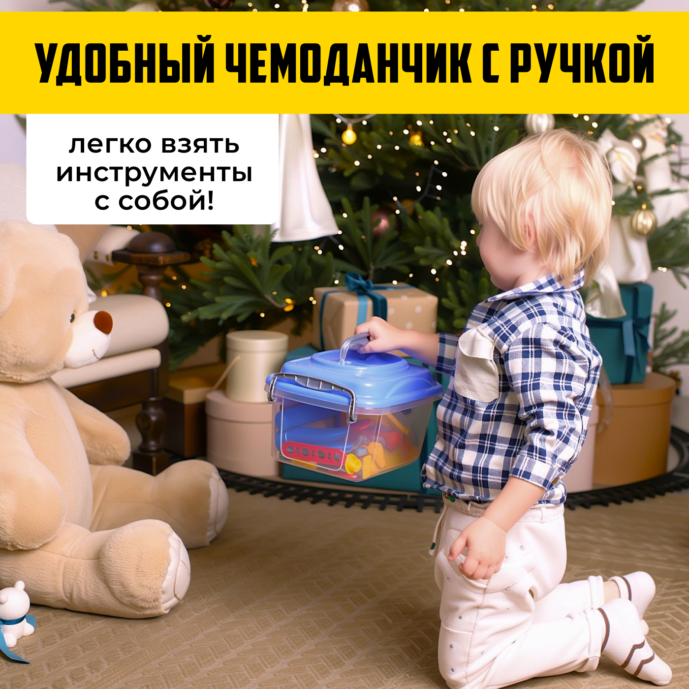 Набор детских игрушечных инструментов для детей в чемоданчике от бренда "Полесье"57 предметов интересное: