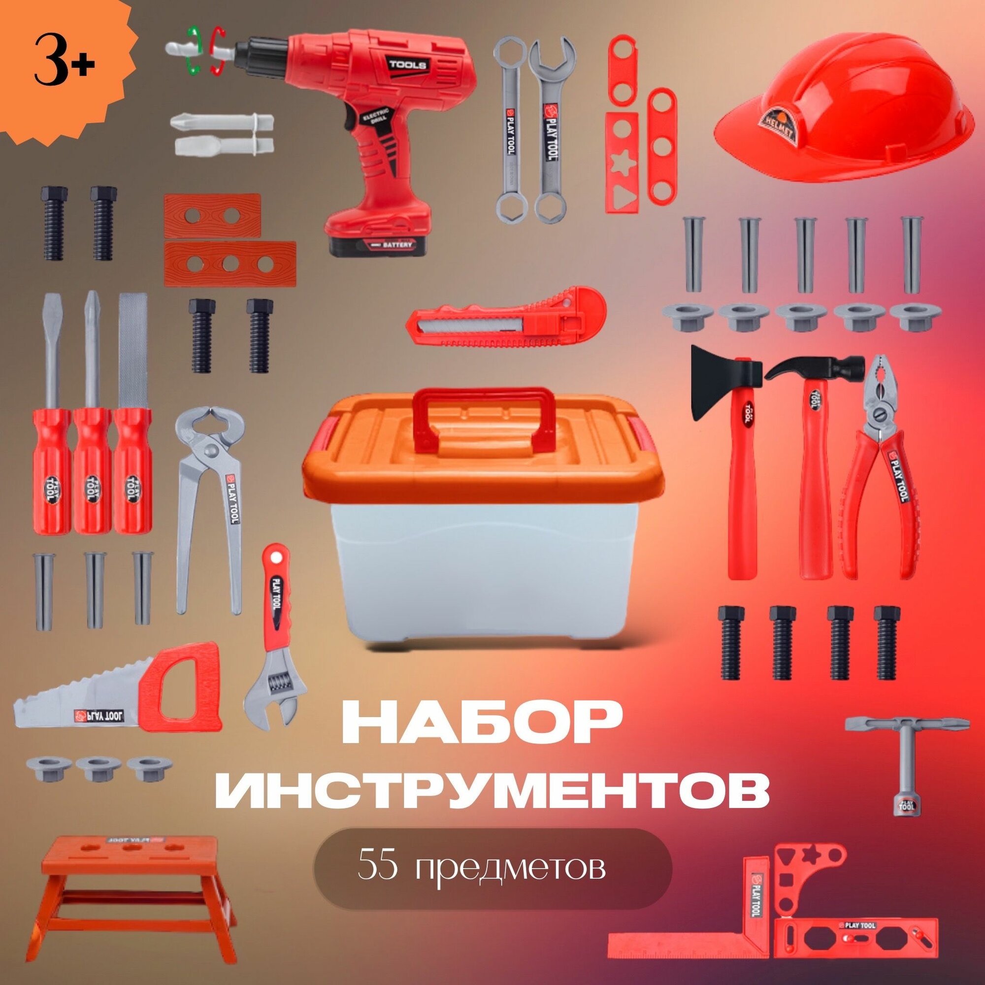 Купить Детский игровой набор инструментов/строителя для мальчика, 55 предметов