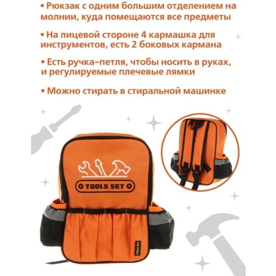 СохранитьИгровой набор Veld CO 130954 Инструментов в рюкзаке 29 предметов интересное: