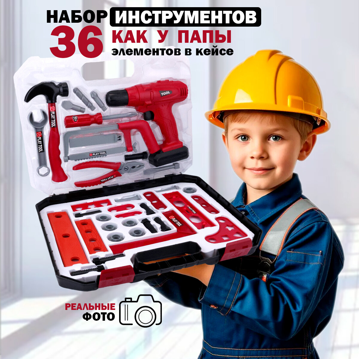 Набор инструментов "Как у папы", для мальчиков, пластик, 36 элементов