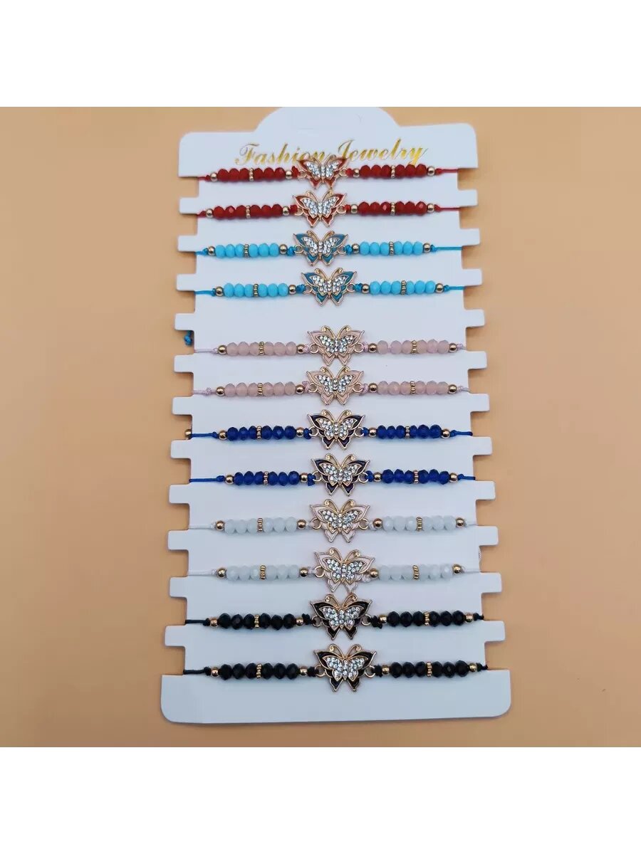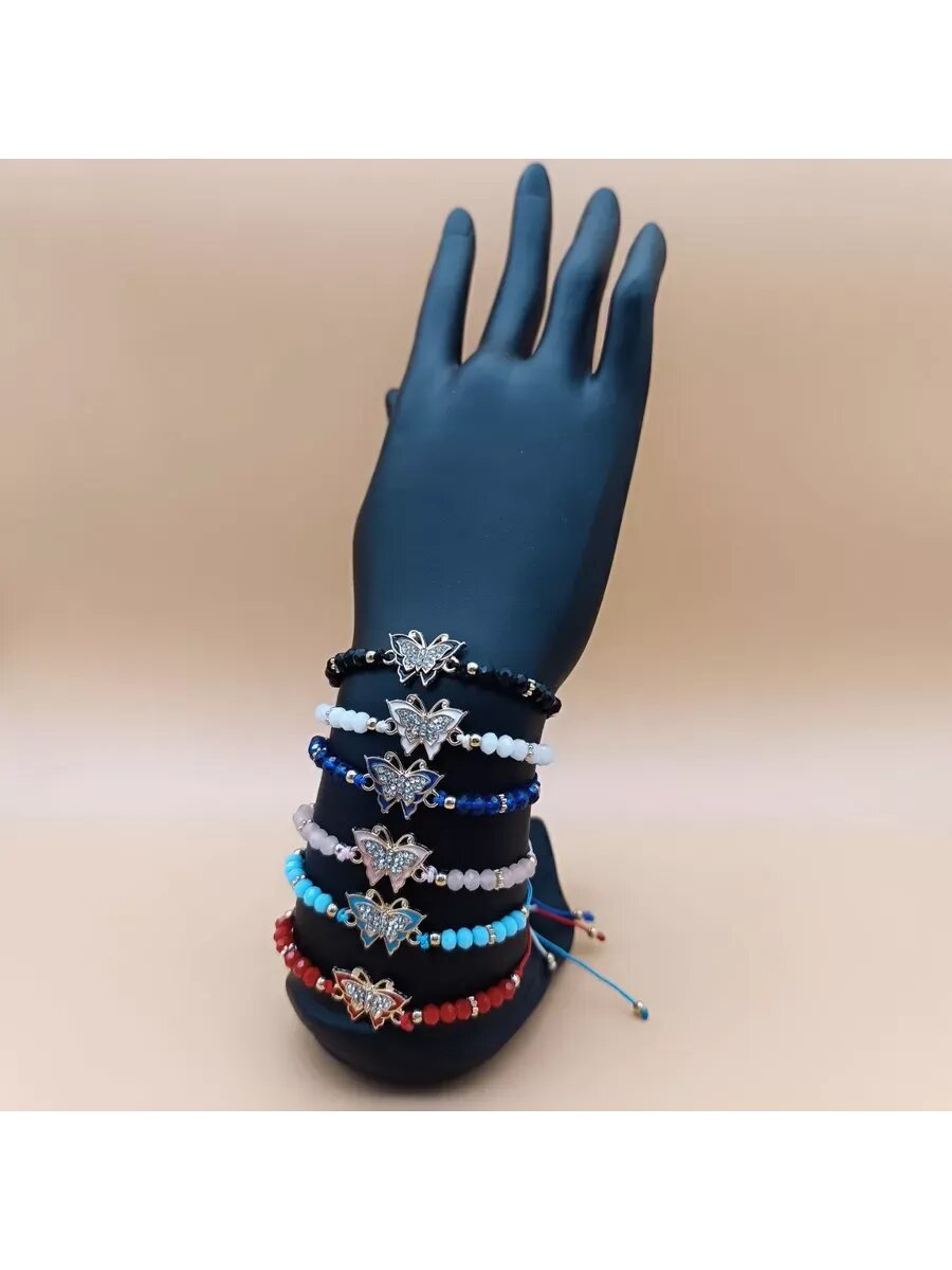 Браслет , белый, голубой, красный, розовый, черный