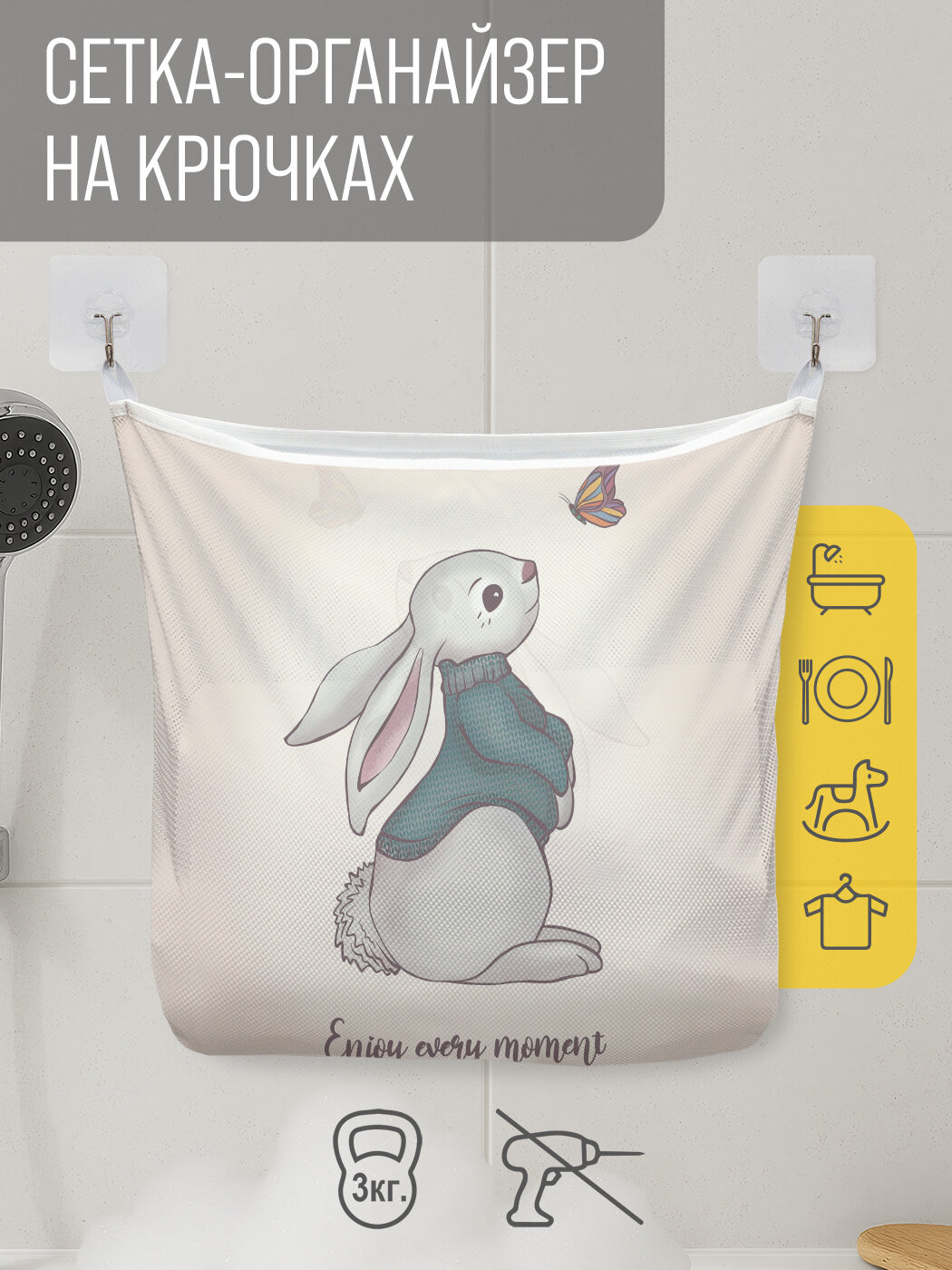 Сетка для игрушек в ванную "Лови момент" органайзер для хранения, крючки, 33x39 см, JoyArty интересное: