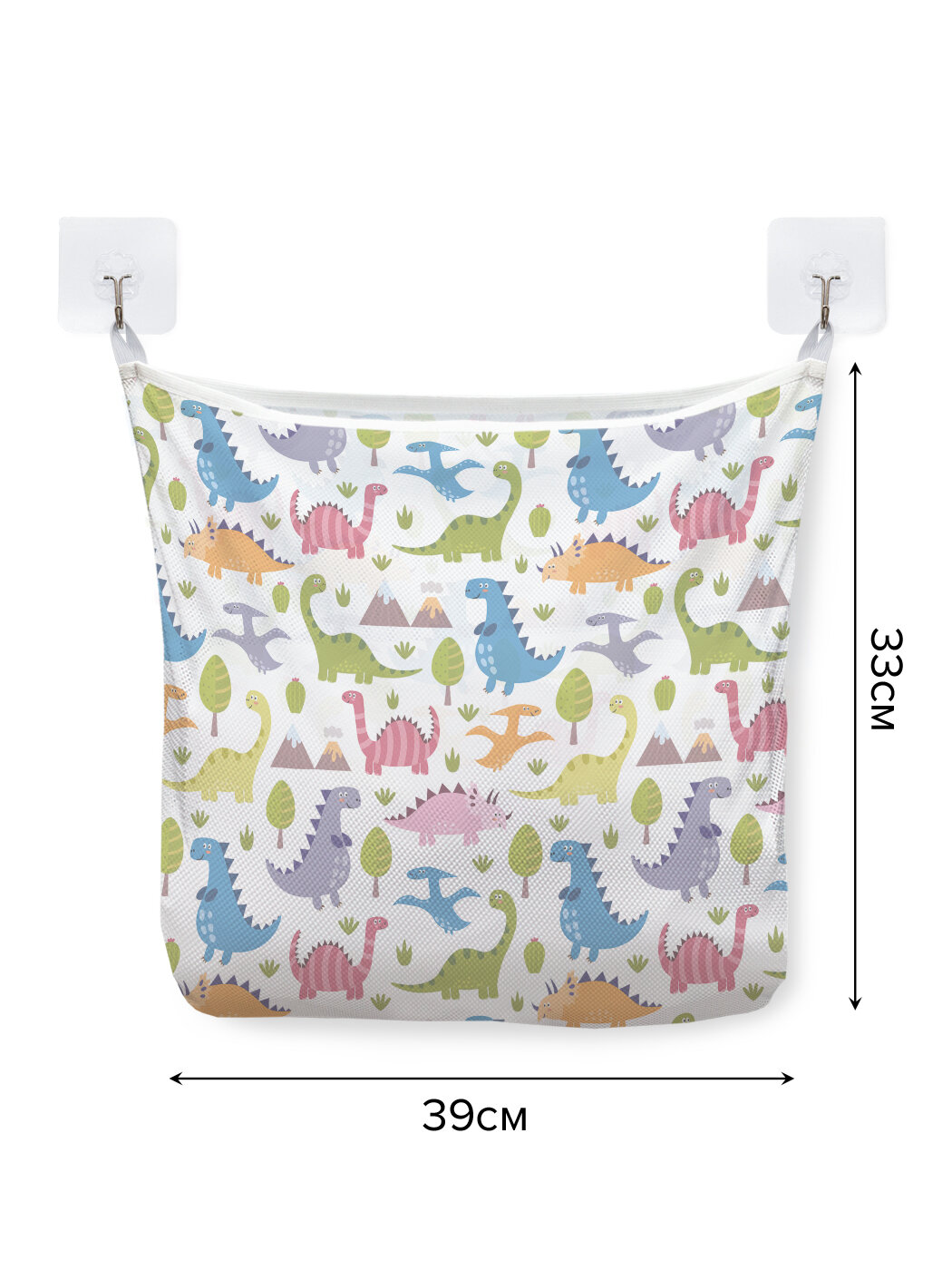 Купить Сетка для игрушек в ванную "Цветные динозавры" органайзер для хранения, крючки, 33x39 см, JoyArty
