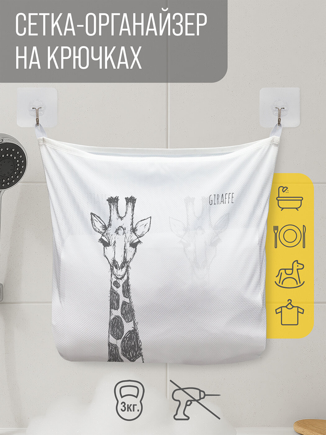 СохранитьСетка для игрушек в ванную "Скромный жираф" органайзер для хранения, крючки, 33x39 см, JoyArty интересное: